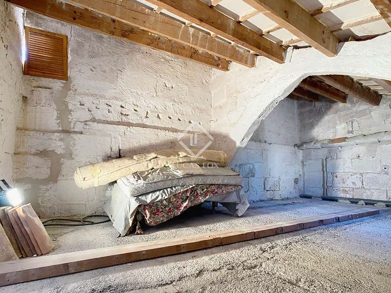 Manor house of 625 m², with a lot of character, from the great palaces of Ciutadella. It is a unique and perfect opportunity as a renovation project to turn it into an elegant luxury property in the historic centre or to use it as a hotel. Lucas fox exclusive. The building is distributed over several floors. On the ground floor, there is a room with independent access , used as a shop, the access door to the property and a third access to the garage and warehouse of 125 m² with a patio. It is possible to integrate it into a single environment of approximately 200 m². In addition, it has a 120 m² lower ground floor , with several rooms that can be connected to each other, with beautiful arched ceilings and marés vaults in good condition and a sink carved out of the same stone, ideal for designing an exclusive space for a bathroom area. and relax or wine cellar. On the first floor, there are several rooms and rooms that preserve the original elements, such as high ceilings with wooden and marés beams, large windows, painted wood, tiled floors, frescoes of artistic value and an endless number of details that bear witness to the his stately past. On the second floor, the lower deck, we find several rooms that can be converted into bedrooms, in which singular elements such as their pointed arches stand out. They have access to the upper terrace with a viewpoint overlooking the cathedral and the sea. Undoubtedly, a unique property, with a lot of character and steeped in history, for those looking for a unique property project. Exclusively with Lucas Fox. Contact us for more information or to arrange a visit.