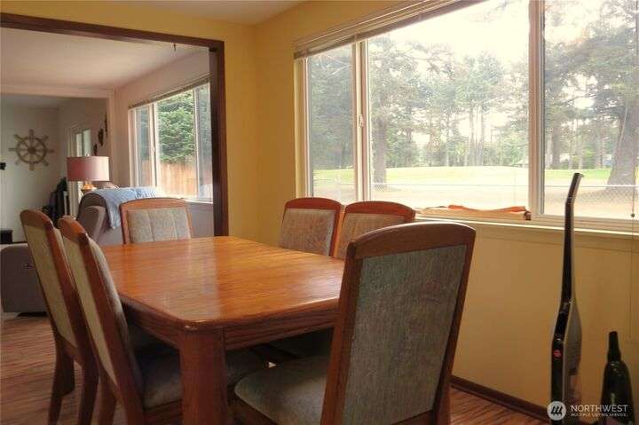 GOLF COURSE HOME! THIS SINGLE LEVEL 1891 SQ FT BEACH HOME BOASTS 3 BEDROOMS AND 2 BATHS WITH VIEWS OF THE FIFTH TEE, FAIRWAY AND 5TH GREEN~LIVING AREA HAS PROPANE FIREPLACE PLUS SLIDING DOORS TO PATI O FOR ENTERTAINING~GALLEY KITCHEN IS USER FRIENDLY~ENJOY MEALS WHILE WATCHING GOLFERS~TWO BEDROOMS HAVE FULL BATHS JUST AROUND THE CORNER~FAMILY ROOM COULD BE THIRD BEDROOM/OFFICE~INDOOR LAUNDRY~ 2 HUGE GARAGES ON EITHER SIDE OF THE HOME~BACK YARD IS FULLY FENCED~HAVE AN RV, NO PROBLEM WITH PARKING PLUS 30 AMP ELECTRICAL PLUG IN! GOLF COURSE CLUB HOUSE IS CLOSE BY A~CLOSE TO DRIVE ON BEACH APPROACH TO THE PACIFIC OCEAN FOR SUNSETS~TAKE ADVANTAGE OF ALL THE AMENITIES OCEAN SHORES HAS TO OFFER!