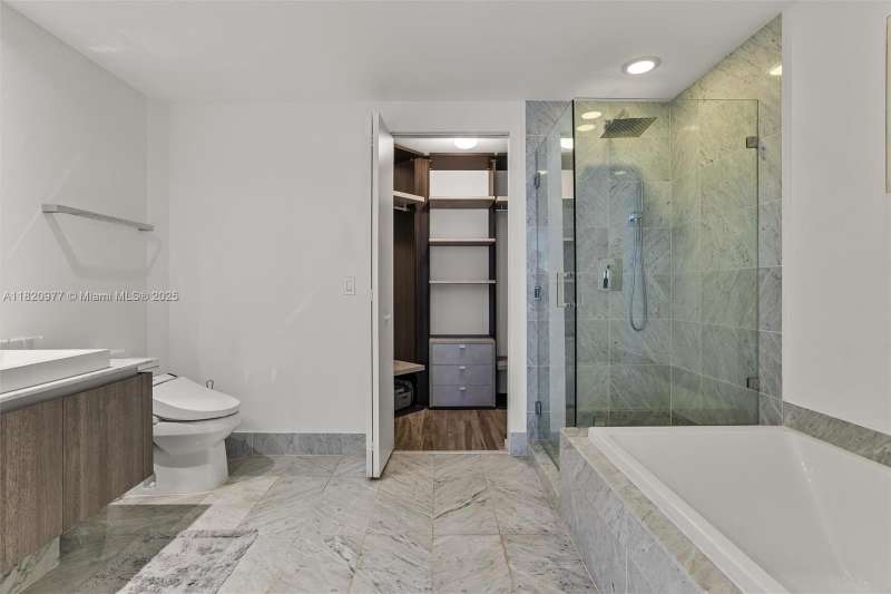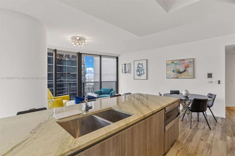 Wonderfully furnished & equipped 2 bed/2 bath unit in SLS Lux sold turn key! Biscayne bay & Miami skyline views await you. Private foyer elevator, 1 covered parking space. Designer furniture and furnishings. Upgraded unit finishes include: Italian Ciot green marble countertops & LED lighting in kitchen, white calacatta luxor marble vanity tops & Toto washlets in bathrms, Italkraft closet system in closets, automated window roller shades throughout. Bldg amenities include: SLS Hotel - 2 pools - Roof top private pool for residents only, Cabanas, bar & restaurants, Fitness Ctr & sauna, Spa,children's playground w/rock climbing, Billiard, Wine & cigar room, game room, putting green, tennis, 45th fl residents wine lounge. Brickell City Center w/entertainment & dining.Close to airport & M.Beach