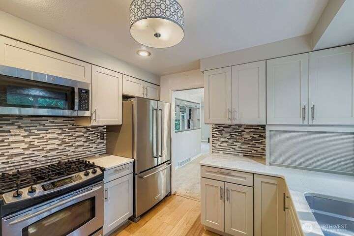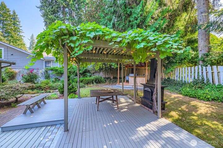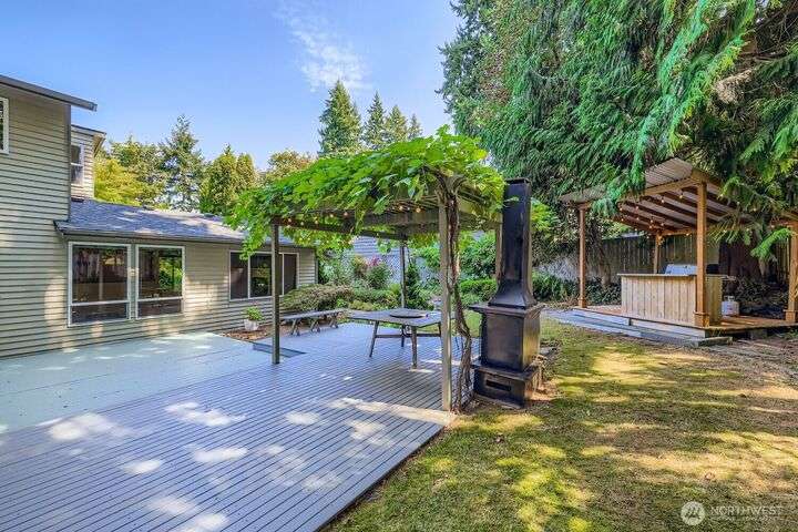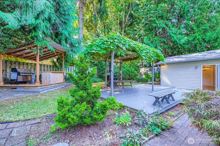 Beautiful 2-story home in desirable Arrowhead! First time on the market in 47 years. This 3-bed, 2.5-bath home has a versatile layout offering many new creative, flexible living spaces. The sitting room off kitchen presents opportunity to expand, enlarging kitchen area if needed. Spacious bonus room ideal for dining/entertaining with built-ins & ample storage, leading you out to a beautiful private backyard oasis! The yard showcases expansive decks, lush gardens a gazebo w/hanging grapes and a dedicated grilling/ bar area. This home features an equipped, built-in generator-ready for a seamless power backup. Conveniently located across the street from Inglewood Golf Club and within the highly sought-after Northshore School District.