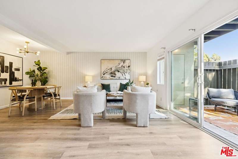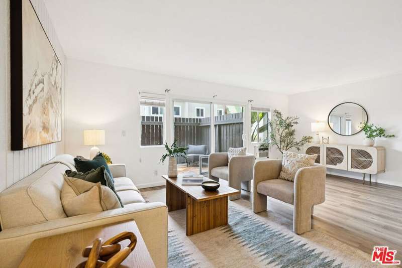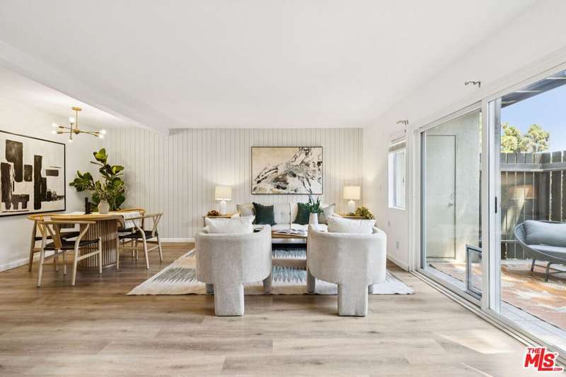 This property is located in a census tract designated as a High Cost Area. For first-time homebuyers with income under $11,350/mo, the High Cost Area Purchase Program offers up to $19,258 in agency credits for an interest rate buydown. Upon entering this ground-level end unit, you will experience an open-concept living and dining area that leads to the exclusive patio, creating a seamless indoor-outdoor flow. Boasting an open and airy floor plan, this home is filled with natural light. Unit features newer laminate flooring throughout, an ultra-private patio perfect for relaxing or entertaining with a storage room, and two covered (tandem) parking spaces. The spacious layout includes two generous bedrooms and two newly renovated bathrooms. The primary bedroom boasts two large closets and an en-suite full bath. Tara Hill is a pet-friendly, resort-style community with fantastic amenities, including a 24-hour guarded entry, two pools, two spas, a clubhouse, a fitness center, a playground, and beautifully manicured grounds. The HOA covers earthquake insurance, gas, water, trash, Spectrum cable, and high-speed internet, offering exceptional value! Conveniently located near major hubs like Sony and Amazon Studios, the Expo Line and multiple freeways, commuting is a breeze. Plus, you're just minutes from Downtown Culver City's vibrant restaurants, shops, and entertainment, as well as nearby highlights like the Ballona Creek bike trail, a dog park, Westfield Mall, and West LA College. Enjoy the best of Westside living in this delightful Culver City gem