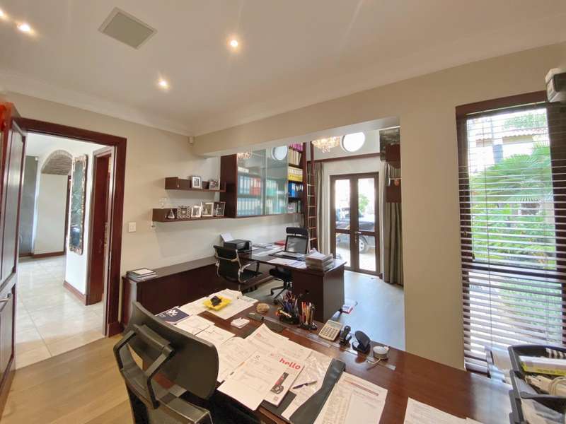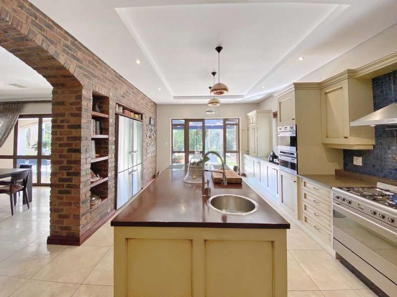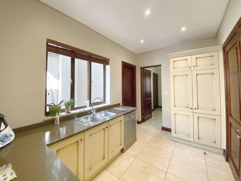 The modern kitchen presents warm wood finishes, gas stove, tea & coffee station which can be closed off and a separate scullery with space for appliances. The landscaped surrounds with sparking pool and wooden deck further complete this home. With automated garaging for 4 cars, excellent security, inverter system to help make this load-shedding days easier and a pristine interior?Ǫthis exclusive residence is for the sophisticated eye!