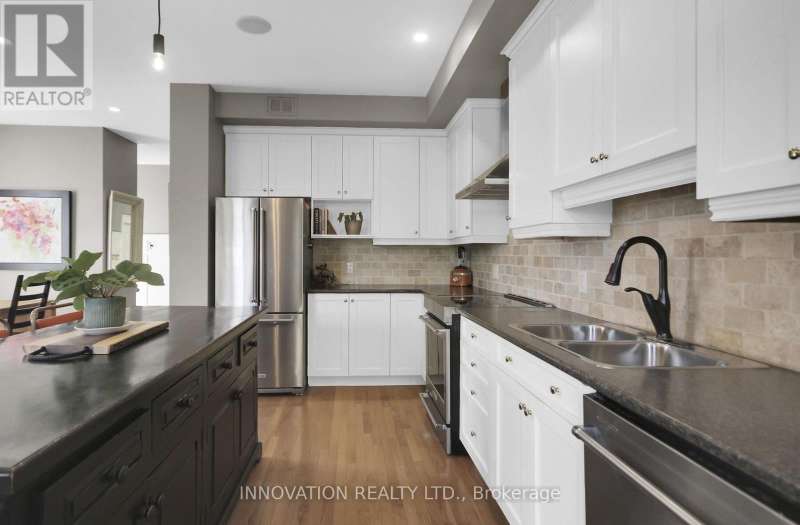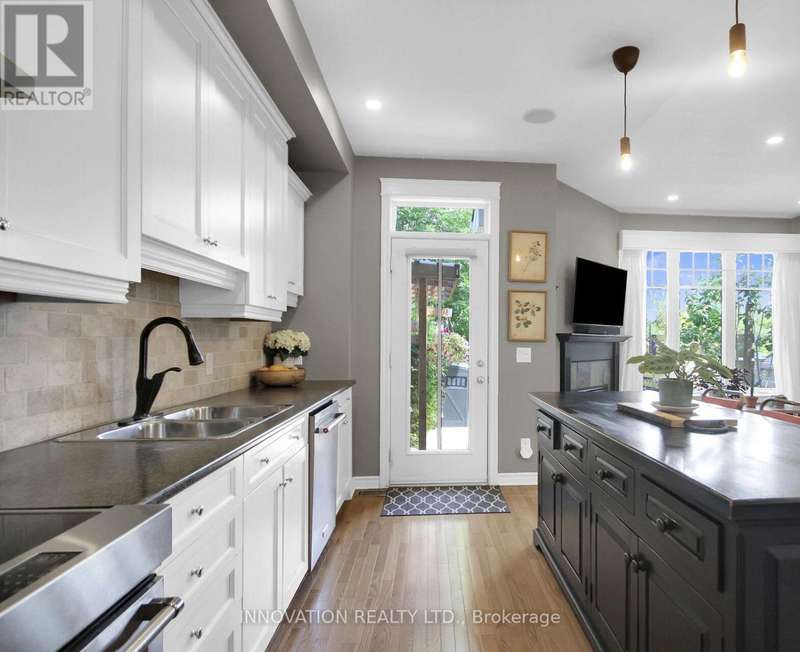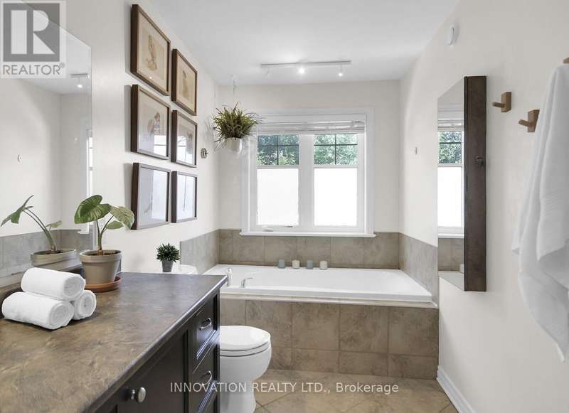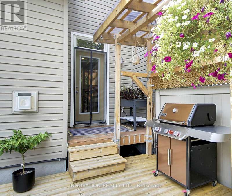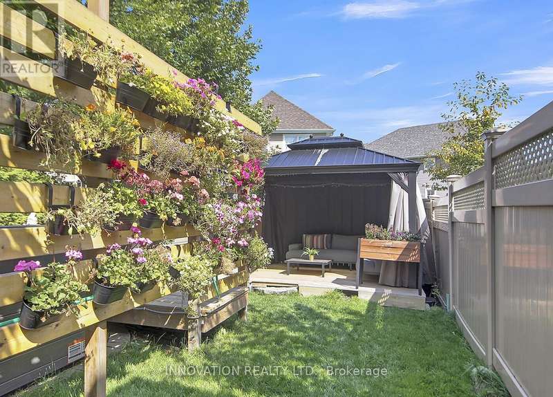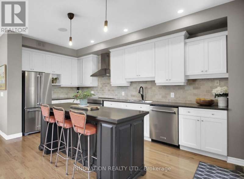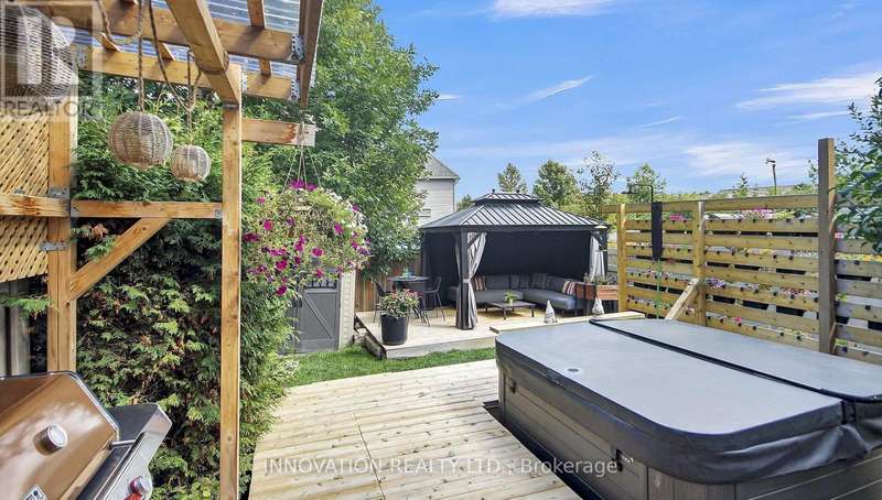 Welcome to this sophisticated and spacious Tamarack end-unit townhome in the family-friendly community of Findlay Creek. This beautifully maintained 3-bedroom home boasts over 2000 square feet of refined living space, including a backyard oasis and a widened interlocked driveway for extra parking. The main level features an open-concept layout with warm hardwood and ceramic tile flooring, a cozy gas fireplace and a separate den that's perfect for a home office or an in-law suite. The stylish & functional kitchen is equipped with high-end KitchenAid stainless steel appliances, large custom island with plenty of counter & cabinet space. The upper level features a primary retreat that includes a large walk-in closet and a luxurious ensuite with a soaker tub and separate shower. Enjoy the convenience of upper-level laundry. The fully finished lower level offers endless potential for a family room, home gym or home office. Step outside into a private backyard retreat, designed for relaxation and entertaining, featuring a new deck, covered BBQ area, hot tub (2023), gazebo, all framed by lush, tall hedges and mature trees. Recent upgrades in 2023 include a high efficiency furnace, air conditioner, tankless hot water heater, KitchenAid appliances and hot tub, this home is practically new! Steps away from parks, trails, schools and a short distance away from grocery, restaurants, LRT Leitrim station and much more, this home is a must see! (id:6509)