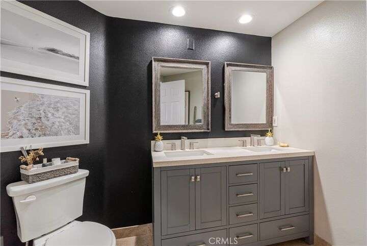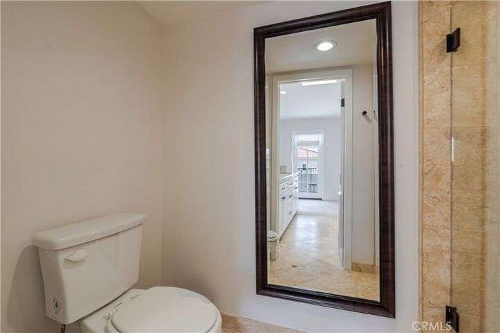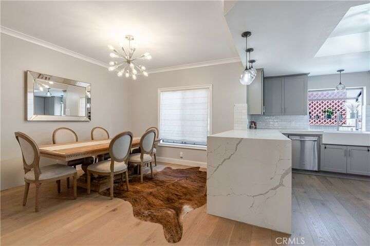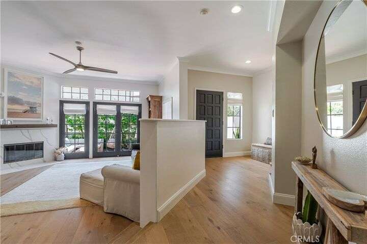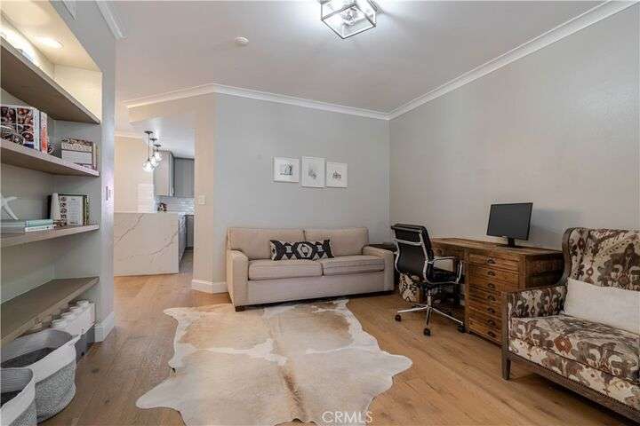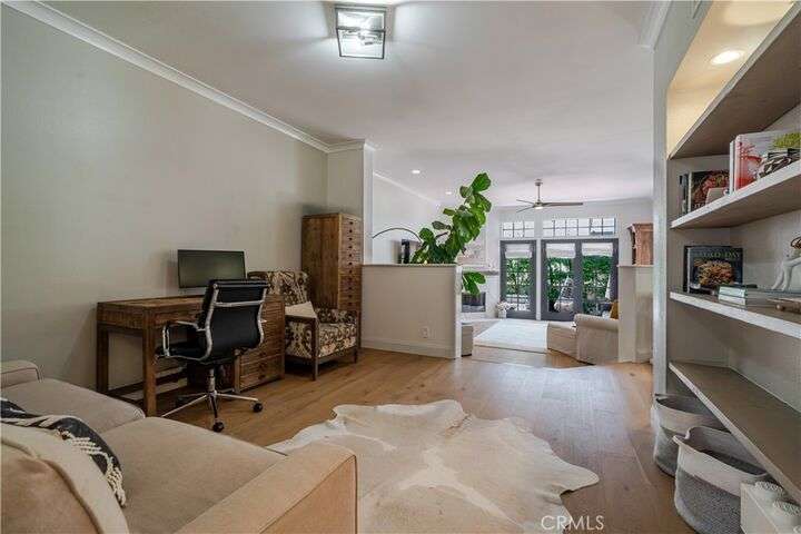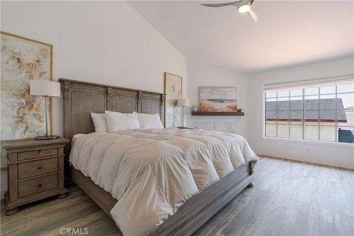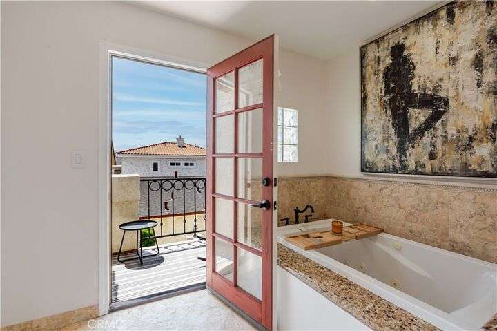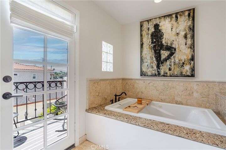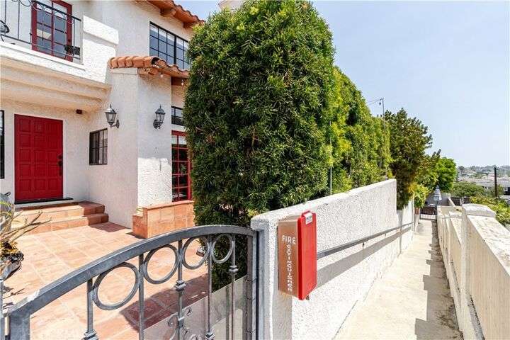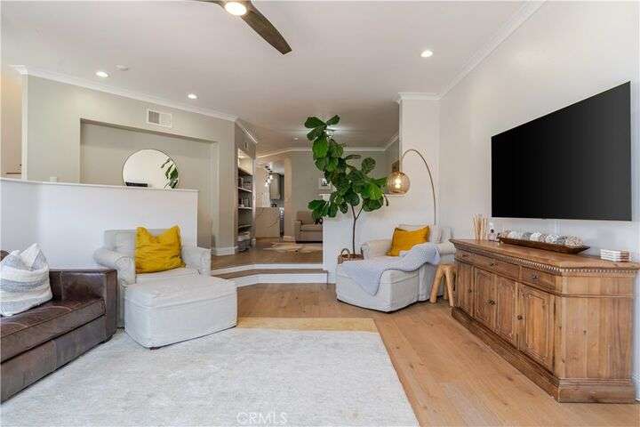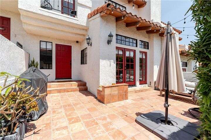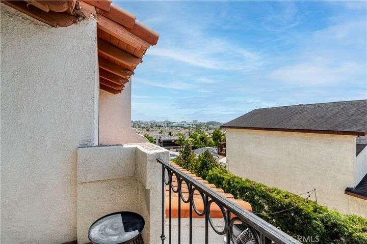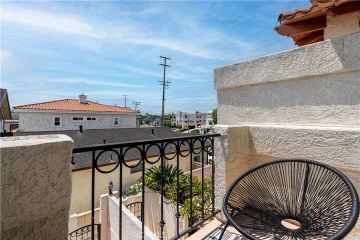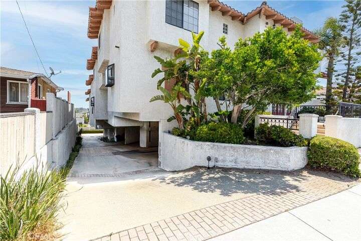 Architecturally Distinct Contemporary Townhome with City Views in South Redondo Designed by acclaimed architect Doug Leach, this beautifully reimagined townhome offers modern elegance, thoughtful updates, and sweeping city light views. The custom layout sets it apart, showcasing a chef’s kitchen with quartz countertops, modern cabinetry, stainless steel appliances, a breakfast bar, and rich luxury floors. The expansive primary suite features vaulted ceilings, a cozy fireplace, generous walk-in closet, and a private balcony to take in the views. The spa-like primary bathroom includes travertine tile, a jacuzzi tub, separate glass shower, dual vanities with granite counters, and detailed wood accents. All bathrooms have been fully updated, and each bedroom offers vaulted ceilings, ample closet space, and views of the city skyline. Designer upgrades are found throughout, including built-in niches, custom lighting, upgraded plumbing fixtures, and elegant crown molding. The open interior extends to a spacious private patio ideal for outdoor dining or entertaining with a view. A separate laundry and storage room adds convenience. Located just minutes from the beach, marina, shopping, and dining, this home also includes a private two-car garage with direct access and additional guest parking.