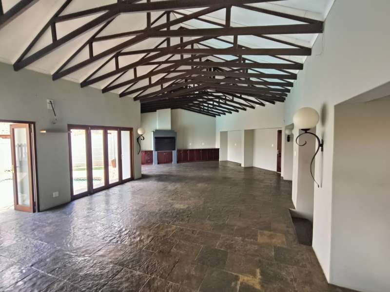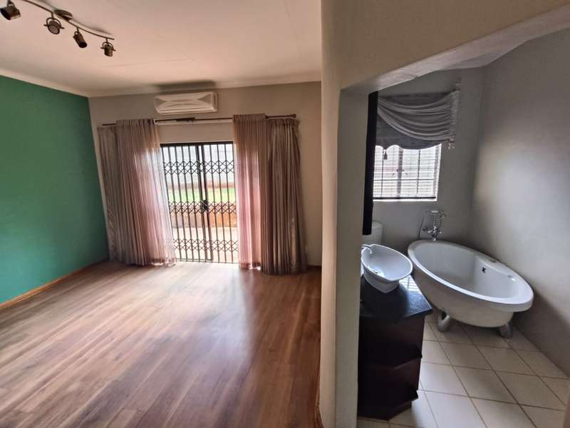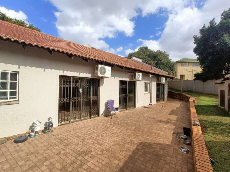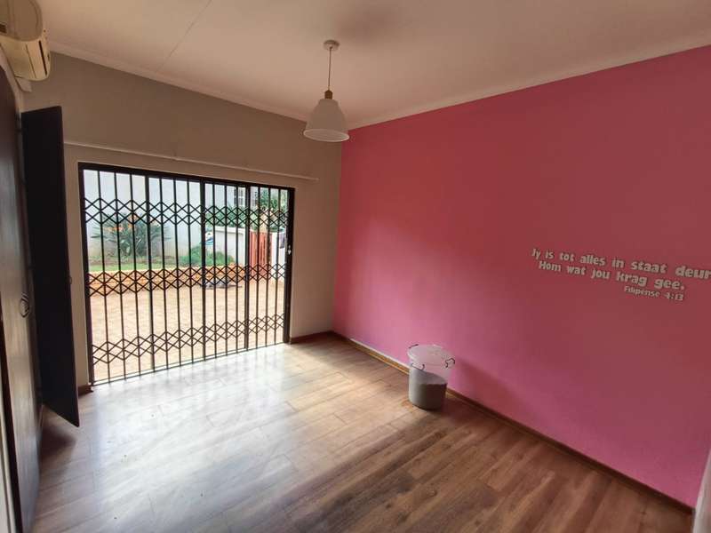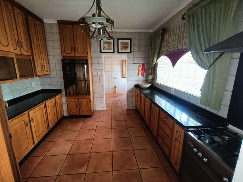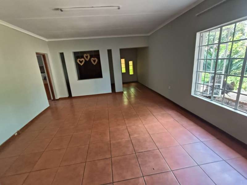 The perfect opportunity to start a Guest house or just a big Beautiful family home for sale in Cashan! This property has a house and a flat. The house has 4 generously sized bedrooms, fitted with built-in cupboards, laminated floors and each bedroom has its own outside entrance and entrance into the house. There are also 3 bathrooms, big modern kitchen with a separate scullery/laundry area. The property also has a lounge, dining room and large Entertainment area with built-in braai. The flat consists of a lounge, kitchen, bedroom and bathroom. On the outside the property has a swimming pool, lapa and boma. There is a beautiful spacious garden, a JoJo water tank with pressure pump and for security the property has an alarm system, automated garage and gate, burglar bars, cameras and beams. Call us to view this beautiful property.