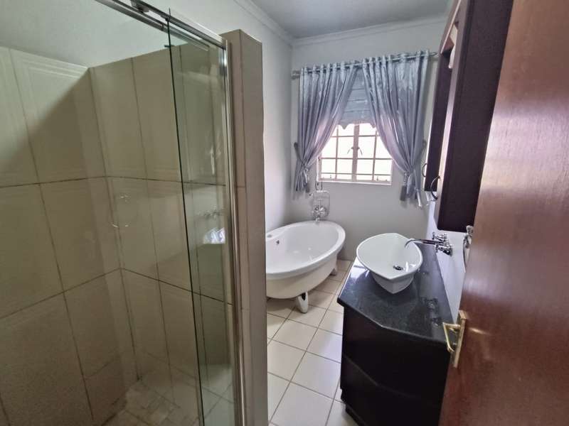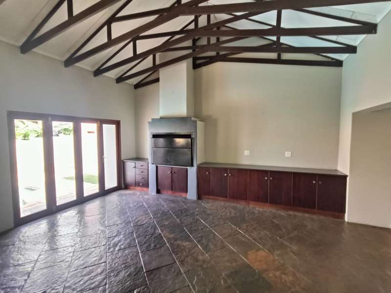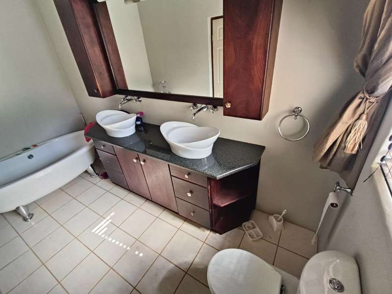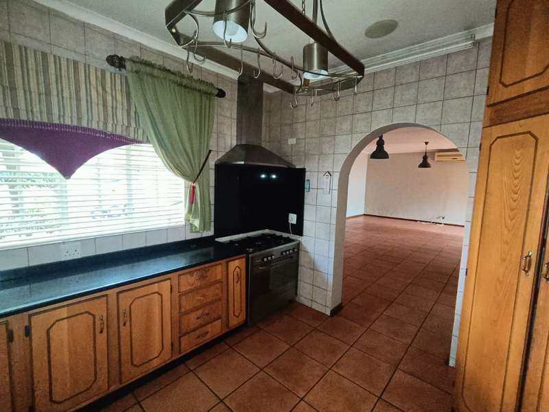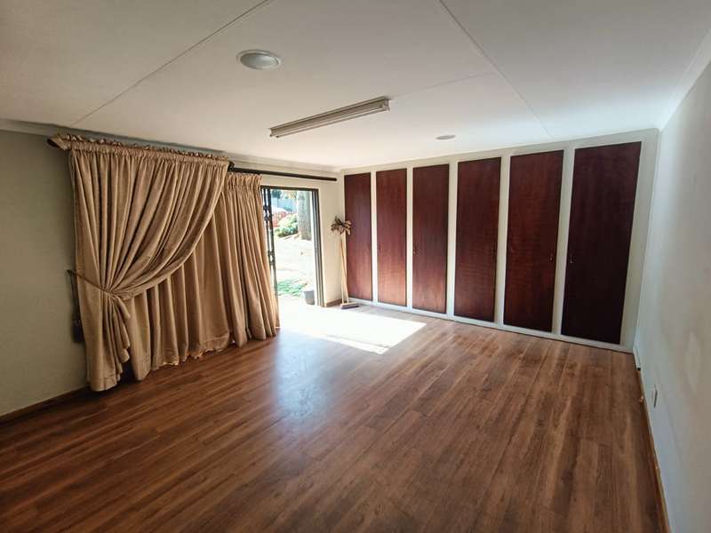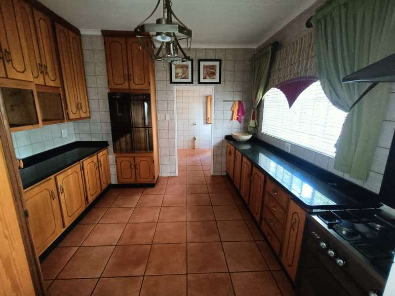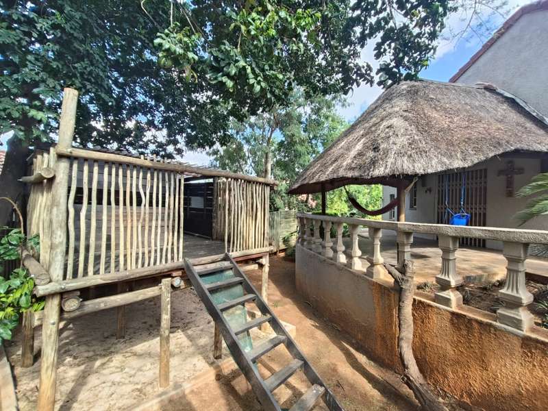 The perfect opportunity to start a Guest house or just a big Beautiful family home for sale in Cashan! This property has a house and a flat. The house has 4 generously sized bedrooms, fitted with built-in cupboards, laminated floors and each bedroom has its own outside entrance and entrance into the house. There are also 3 bathrooms, big modern kitchen with a separate scullery/laundry area. The property also has a lounge, dining room and large Entertainment area with built-in braai. The flat consists of a lounge, kitchen, bedroom and bathroom. On the outside the property has a swimming pool, lapa and boma. There is a beautiful spacious garden, a JoJo water tank with pressure pump and for security the property has an alarm system, automated garage and gate, burglar bars, cameras and beams. Call us to view this beautiful property.