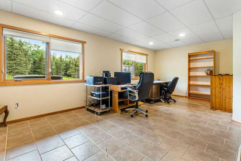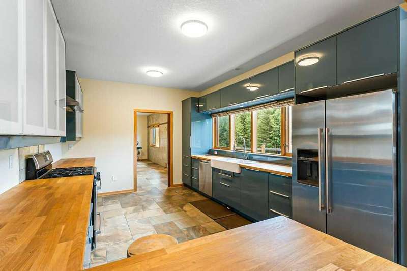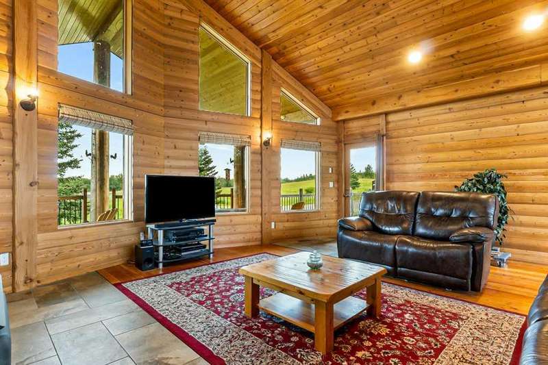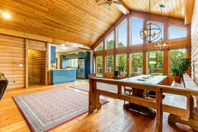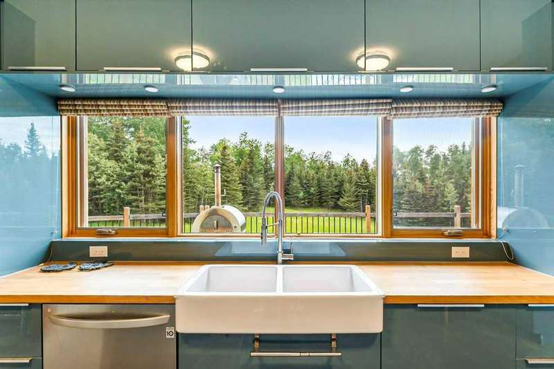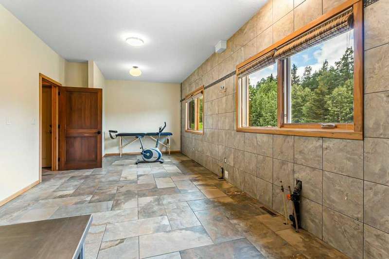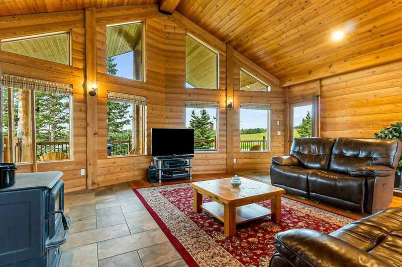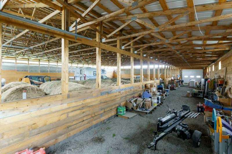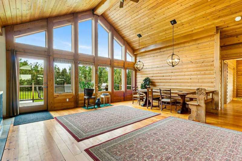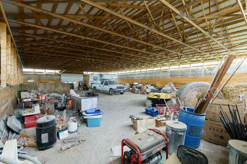 Stunning location just 10 minutes west of Water Valley. This beautiful 150-acre fenced and gated property offers a rare blend of open pasture, spacious yard, and dense forest with meandering creeks, creating an ideal setting for nature lovers, hunters and horse enthusiasts alike. The property includes a MASSIVE 100’ x 75’ INDOOR RIDING ARENA with a full-length 16’ side storage area along the east side—perfect for equipment, tack, and feed. Approximately 50 acres are dedicated to hay and pasture, while the balance is mature forest, offering privacy and recreational opportunities. North boundary is country grazing land and crown land is close by. Set up for a few horses with corrals and a round-pen. The unique 2,571 square foot walkout bungalow features vaulted ceilings and warm fir finishing throughout. The open-concept main living space includes a wood-burning stove, a huge kitchen ideal for gatherings, and a cozy family room perfect for relaxing. The spacious primary suite is located just off the living area and boasts a luxurious ensuite with a freestanding tub, dual vanities, water closet, brand new shower, wet sauna, and an expansive walk-in closet with custom cabinetry. The main floor also includes a second living area, flex space that was previously a second kitchen (see photos easily could be a second bed or office) and a convenient laundry room complete with a full bathroom, utility sink, and a shower that is also handy as a dog wash station. The bright and spacious lower walkout level includes a large living and recreation room, a full second kitchen, two generous bedrooms, a newly finished four-piece bath, another laundry station, plenty of storage, and a beautiful office with built-in cabinetry—ideal for working from home or another massive bedroom. Such a great space for multi-generational living or additional income. The centre piece of the lower level is a cast iron, top of the line HERGOM oven with a glass cooktop. Additional features include a heated triple attached garage, 30'x65' tarp storage building, BACK UP natural gas generator, two greenhouses for gardening, wood boiler system for the house in-floor heat and a massive west-facing deck to enjoy summer evenings. This exceptional property must be seen to be truly appreciated. Book your showing today!