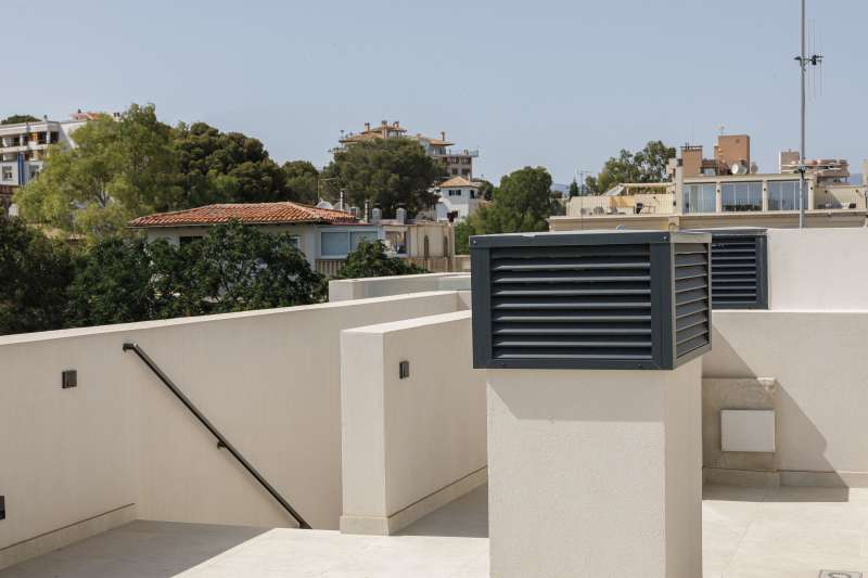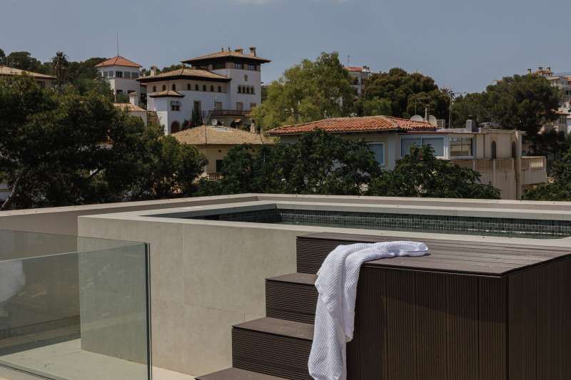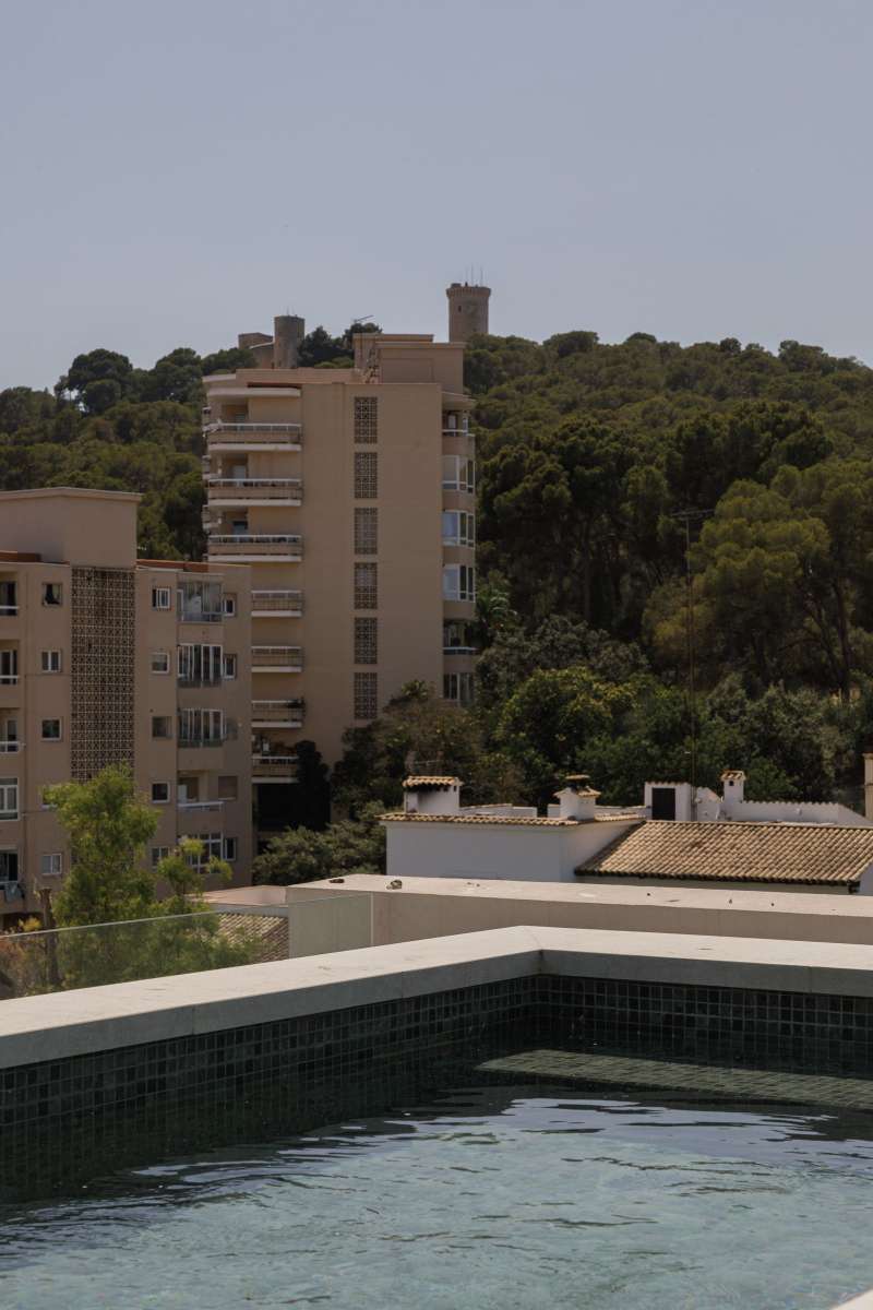 Welcome to this fantastic new cosmopolitan penthouse apartment in the emblematic neighbourhood of Son Armadams in Palma. The penthouse offers the ultimate luxury, featuring a private rooftop terrace with a pool, BBQ, and lounge area. Along the terrace, charming planters filled with greenery create a tranquil atmosphere. There are also three other terraces at different levels, providing both covered and uncovered spaces where to soak up the sun all day long. For those hot summer days and nights, you have the option to add a refreshing mist vaporizer pergola as an extra feature, ensuring you stay cool and comfortable. Indoors, you'll enjoy the convenience of underfloor heating and air-conditioning throughout. The residence boasts a combination of stone and wood floors, creating a timeless and inviting ambiance. The high-quality appliances and top-notch materials guarantee a premium living experience. Included in the price are two underground parking spots and a storage space. The price