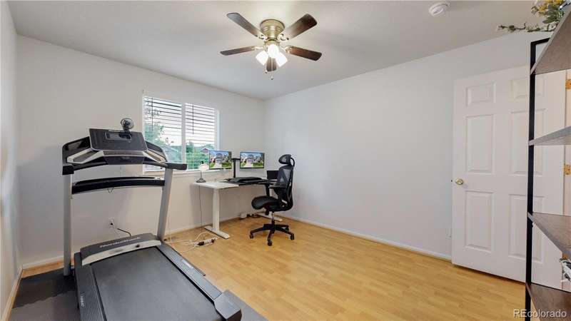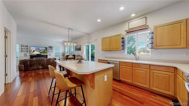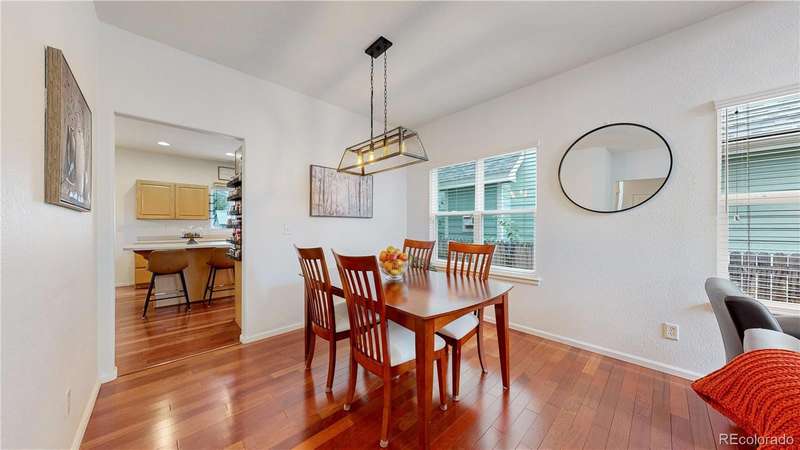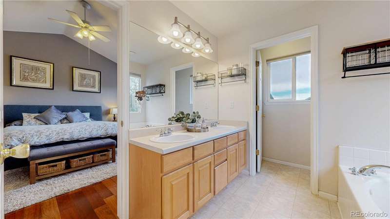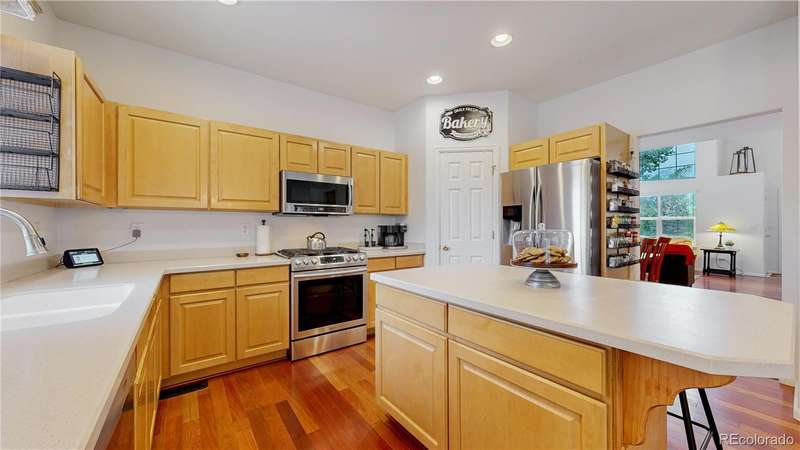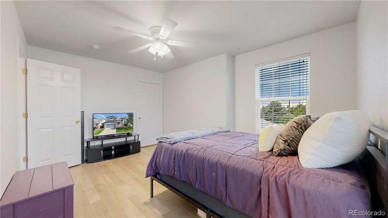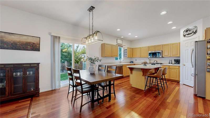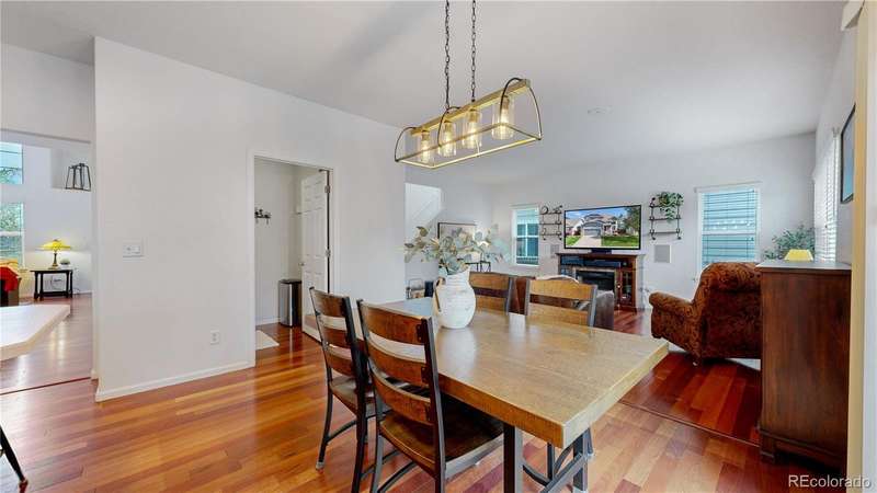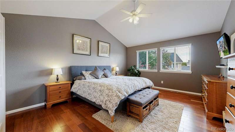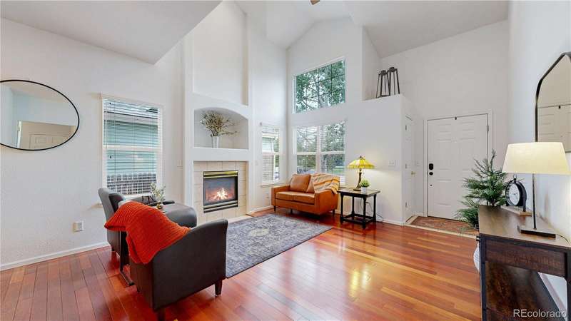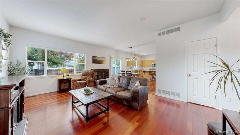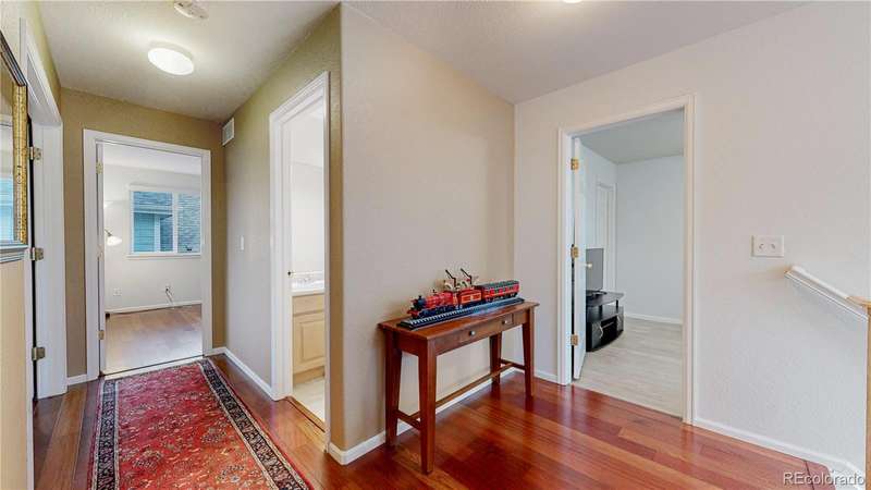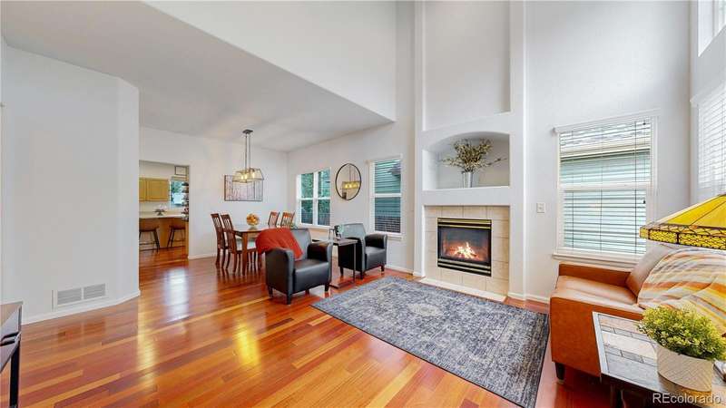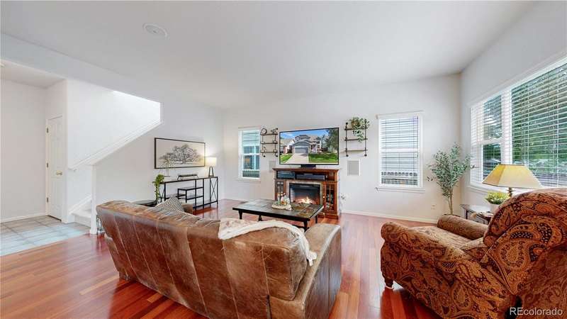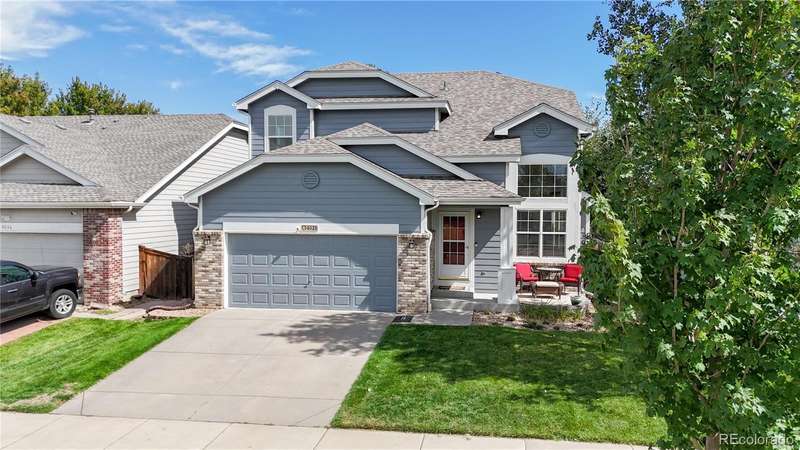 This beautiful Woodcrest Home Builders residence fronts directly to William H. Whitsell Park and greenspace. The thoughtfully designed layout features 5 bedrooms (4 on the upper level) and 4 bathrooms, offering both function and flexibility. Multiple spacious living areas provide room to spread out or gather together. Highlights include gleaming cherry hardwood floors, a kitchen with stainless steel appliances, surround sound in the family room, and a gas fireplace in the front living room. Enjoy the convenience of main-floor laundry (washer and dryer included), a formal dining room plus an eat-in kitchen, and a finished basement with an additional family room, bedroom, and bathroom. The large primary suite boasts a 5-piece en-suite bath with a jetted tub. Three additional bedrooms and an additional full bathroom round out the upper level. Recent upgrades bring peace of mind with newer windows and doors, a class 4 impact-resistant roof (2024), newer HVAC, and a newer water heater. Perfectly located just one block from Green Valley Elementary School, with trails and paths nearby. Easy access to I-70, E-470, DIA, Costco, shopping, dining, golf, schools, and plenty of parks and open spaces.More photos and virtual tours: https://v6d.com/uct