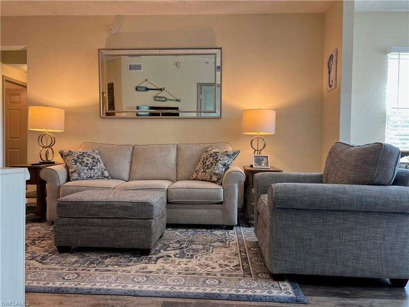 Nestled within picturesque Gardens at Beachwalk, this stunning second floor condo offers an idyllic lifestyle within its gated lakeside community. The residence is adorned with an array of amenities, including a pool, spa, and fitness and game rooms, making every day feel like a retreat. Step into the meticulously renovated interior, complete with Impact glass / Low-e Windows, LVP flooring, and modern furnishings. The spacious living space seamlessly flows, offering tranquil views of the surrounding features. Updated cabinets, appliances, granite countertops, and a laundry/utility room add a touch of convenience, while it's proximity to beaches, shopping, dining, entertainment, healthcare and airports makes it an ideal haven. With nearly 1300 sq ft of living space, walk-in closets in all three bedrooms, and a pet-friendly environment, this turnkey gem radiates comfort and style, presenting an exceptional opportunity for a move-in-ready lifestyle.