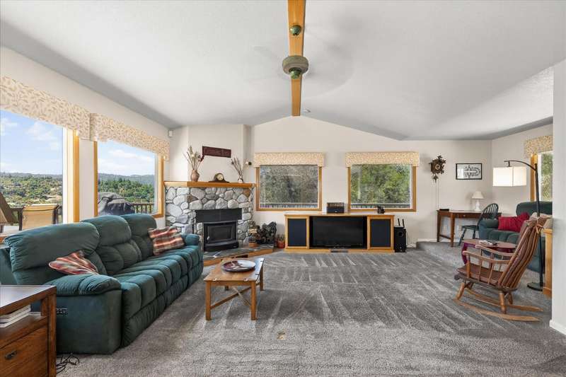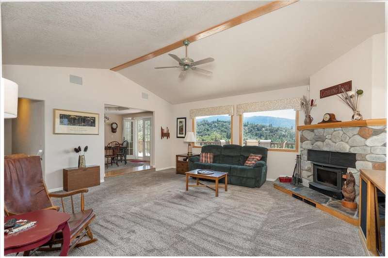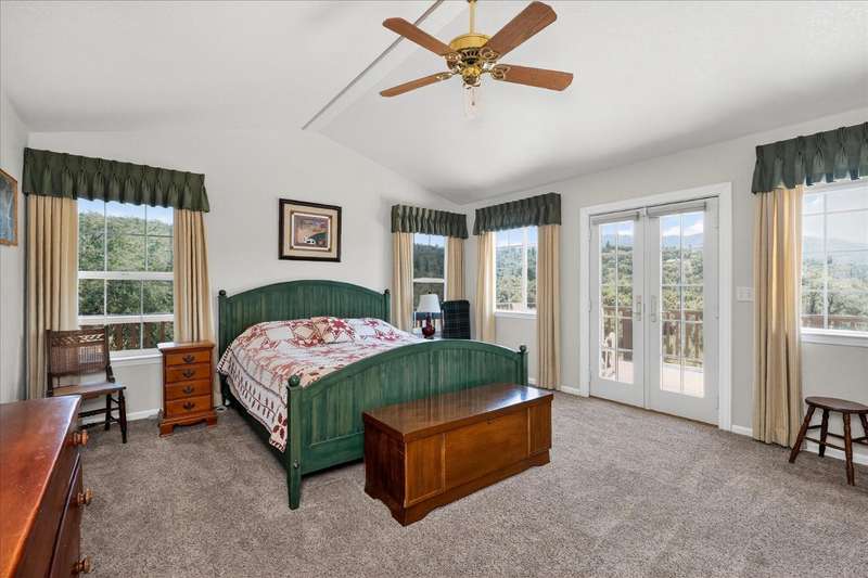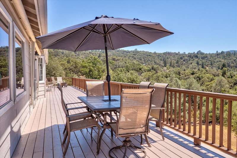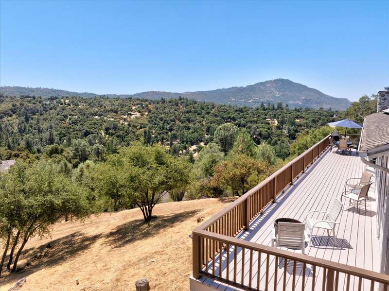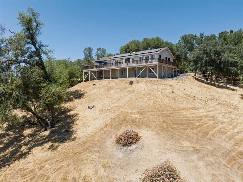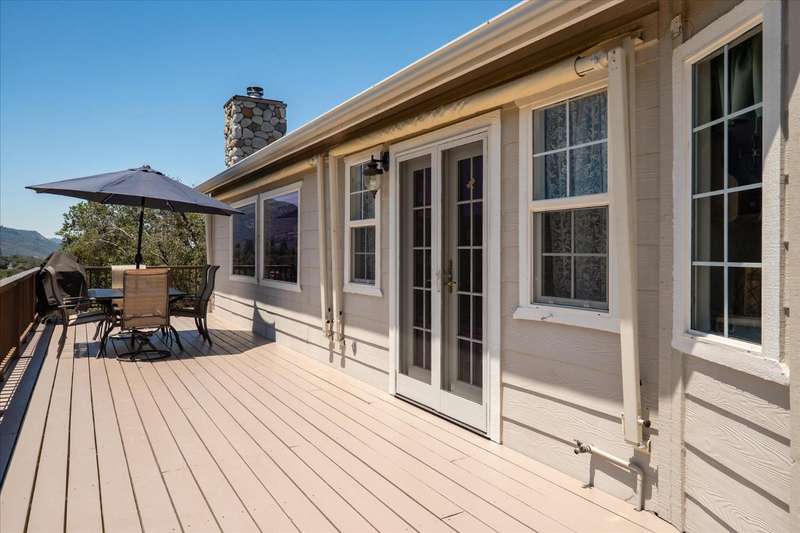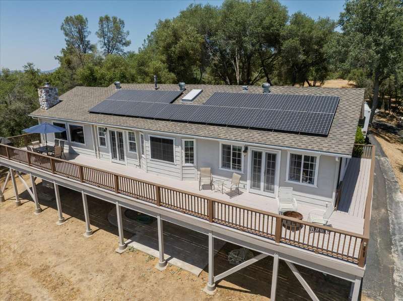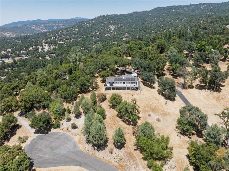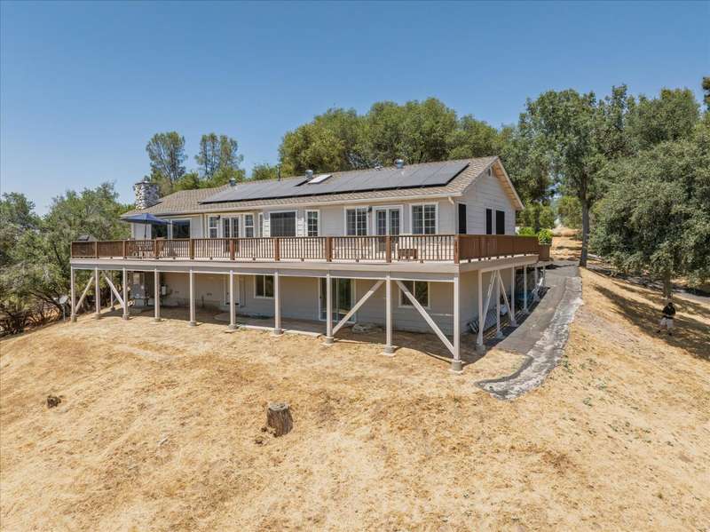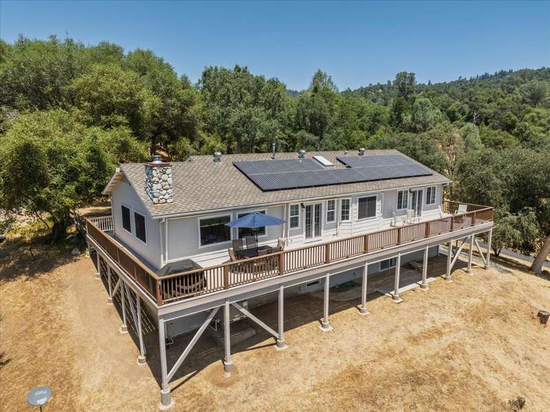 Perched atop a scenic hilltop, this beautifully maintained home offers breathtaking views from every room and from the expansive brand-new approximately 1000 square foot wraparound deckthe perfect place to relax, entertain, or soak in the stunning surroundings. A long, paved driveway leads you to this light-filled retreat featuring owned solar with 24 panels, Anderson doors and windows, brass faucets, skylights throughout, and a smart, functional layout. The primary suite is conveniently located on the main level, while the lower level offers two additional bedrooms, a full bath, and a cozy shared living space that opens to the backyardideal for guests or multi-generational living.You'll love the well-equipped laundry room with a sink, ample counter space, built-in ironing board, and generous storage. Every inch of this property has been thoughtfully maintained and designed for comfort, ease, and energy efficiency. There is also a 3-car attached garage including work bench and storage cabinets, as well as a large detached shed for additional tools and equipment storage.All of this just minutes to the shops and restaurants of Oakhurst, Bass Lake's recreational paradise, and only 30 minutes to Yosemite's south gatea perfect primary residence, vacation home, or income opportunity in the heart of the Sierra.