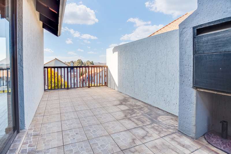 This Lovely apartment in Paulshof, features 3 balconies. The Apartment is situated on the second floor with 2 bedrooms and 2 bathrooms. The kitchen is equipped with granite tops and a pantry cupboard with the living area leading onto a balcony. The loft area serves as the second bedroom with cupboards, a bathrooms and balconies with a built in braai. This area can be used as a second living area. The complex has a clubhouse, swimming pool and 24 hour security.