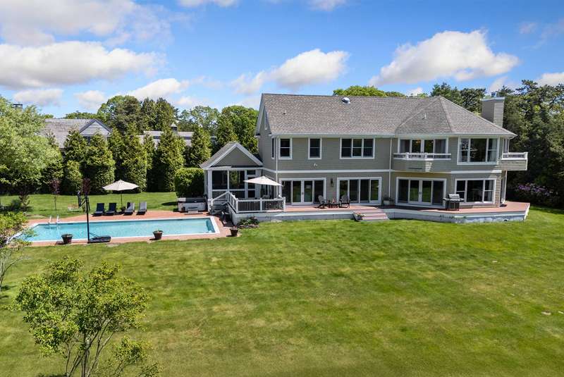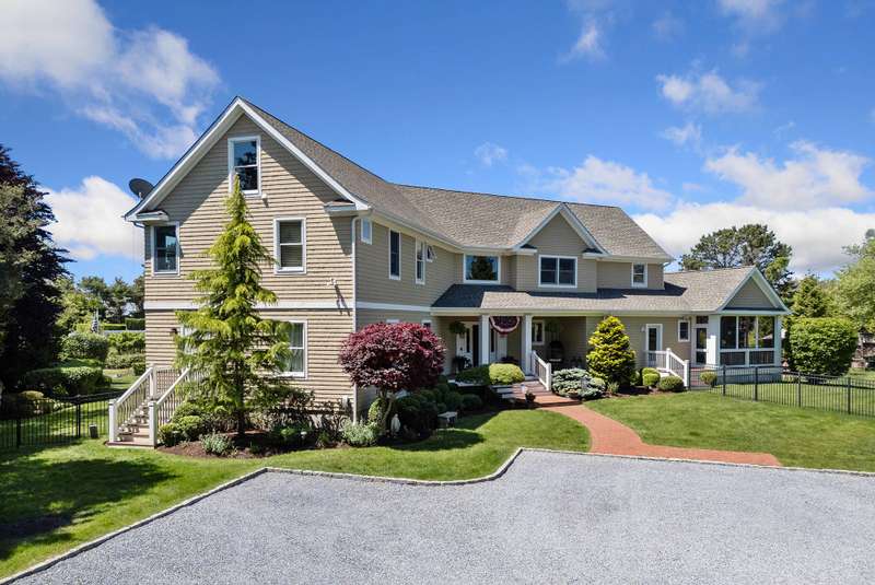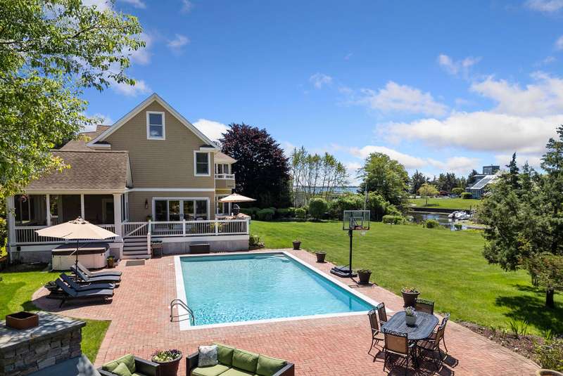 Situated on 1.15+/- acres of waterfront property, this custom post modern home, with 4 bedrooms and 3.5 bathrooms, offers multiple living areas with a formal living/dining room with wood burning fireplace, spacious den with gas fireplace, and additional family room adjacent to the kitchen. There are hardwood floors, custom mill work and oversized crown moldings throughout the house. The newly renovated open kitchen features a large center island with seating, stainless appliances including a Viking range, dining area, wet bar with wine fridge and wine rack. Multiple sliders throughout the first floor bring in lots of light and all lead to the deck and backyard oasis. The generously sized second-floor primary suite offers a walk-in closet, gas fireplace, and a private waterside balcony. The adjoining primary bathroom features a double vanity, soaking tub, separate shower, and an additional balcony with water view. The second floor also hosts a separate guest suite with full bath, 2 additional guest bedrooms with a shared hall bath, office/sitting area, and laundry room. The outdoor area offers all the extras for entertaining. Enjoy the oversized heated gunite pool, outdoor fireplace and pizza oven, enclosed screened porch with seating and a private dock for a boat or jet skis. This beautifully landscaped property offers a serene and relaxing experience overlooking the canal. Listing ID: 924935