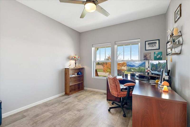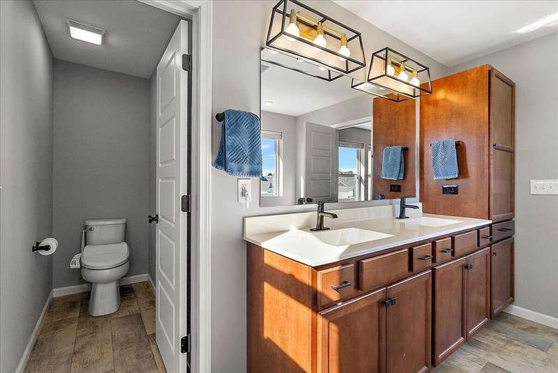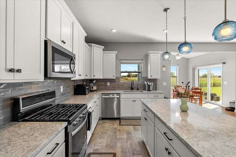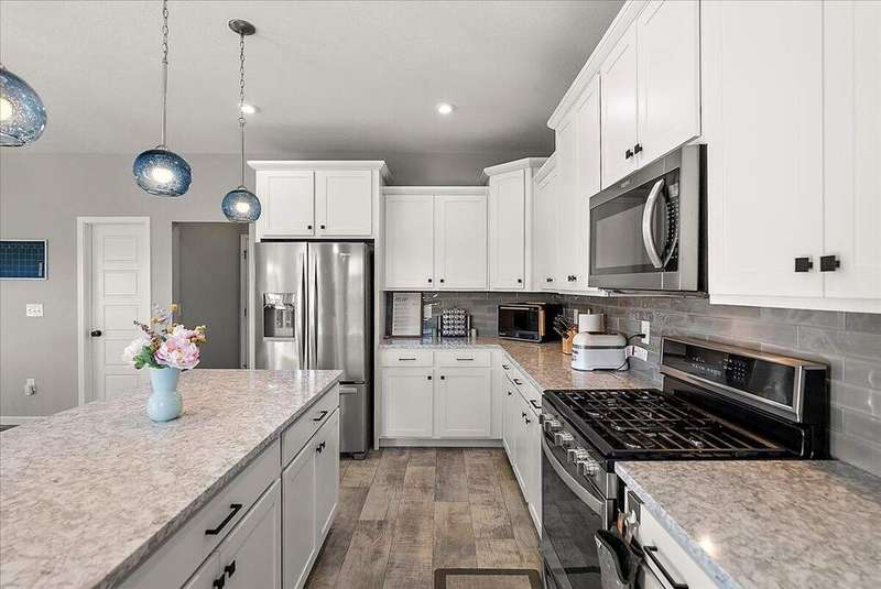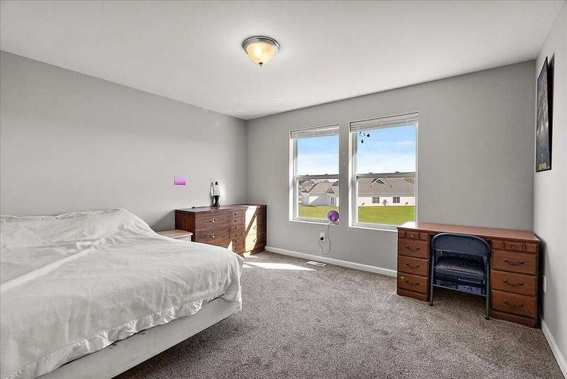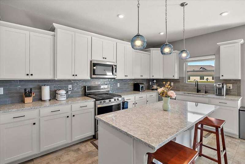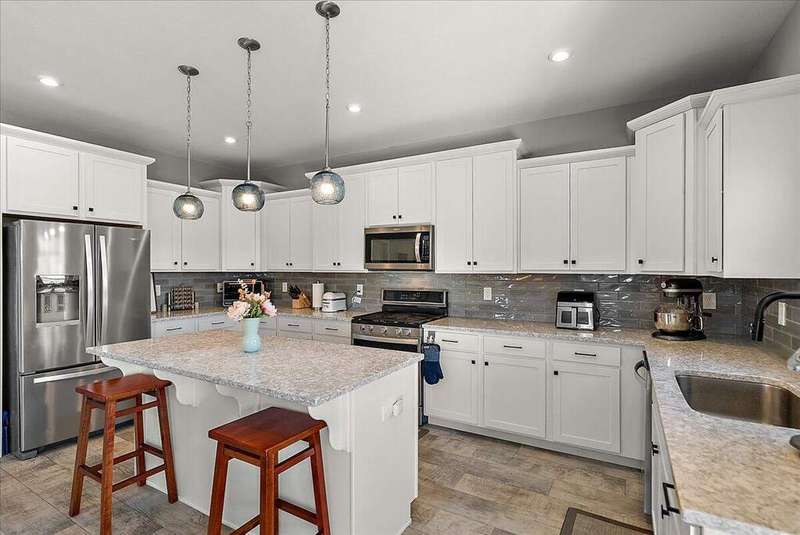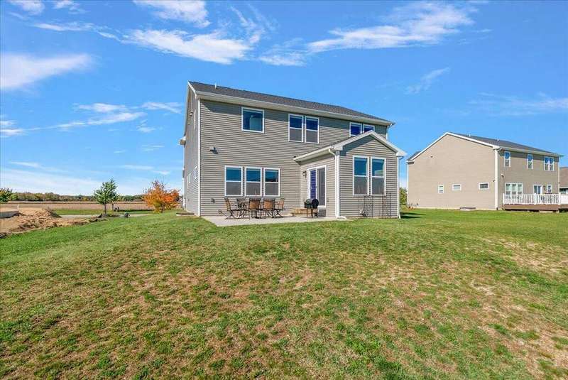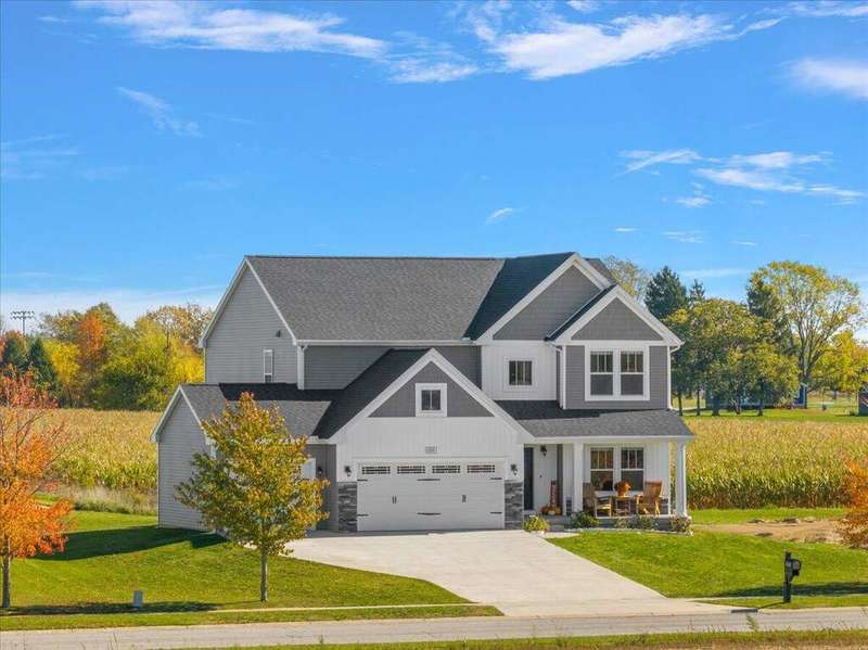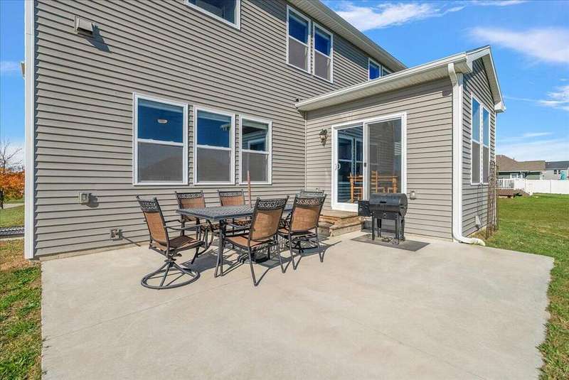 Discover luxury living in the highly sought after Wyndstone Estates Community in Stevensville with this stunning 5 bedroom, 3.5 bathroom home, built in 2022 with custom upgrades and floor plan. Offering over 3,700 SQFT of beautifully designed living space, this modern home features an open concept floor plan, ideal for both everyday living and entertaining. The kitchen is the heart of the home, complete with quartz countertops, a spacious island, abundant upgraded cabinetry with soft close drawers, SS appliances, pantry, bonus sun room overlooking the backyard, and home office. Second floor with four generously sized bedrooms, including the serene primary suite with shower, jetted tub, walk in closet, and convenient upstairs laundry room. Finished basement provides a spacious family room, bedroom, full bath, and ample storage. Outdoor living is enhanced with a concrete patio with gas hook up. Enjoy the practicality of an insulated attached 3 car garage with hot and cold water and the peaceful setting of one of Stevensville's most desirable neighborhoods. Some upgrades include 200 amp electrical, solid core doors, and dual zoned HVAC. This is the perfect blend of space, style, and location. Don't miss your opportunity to call it home!