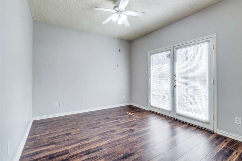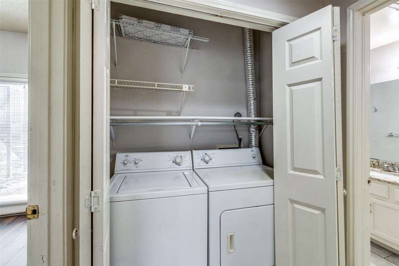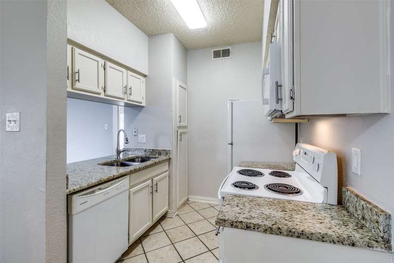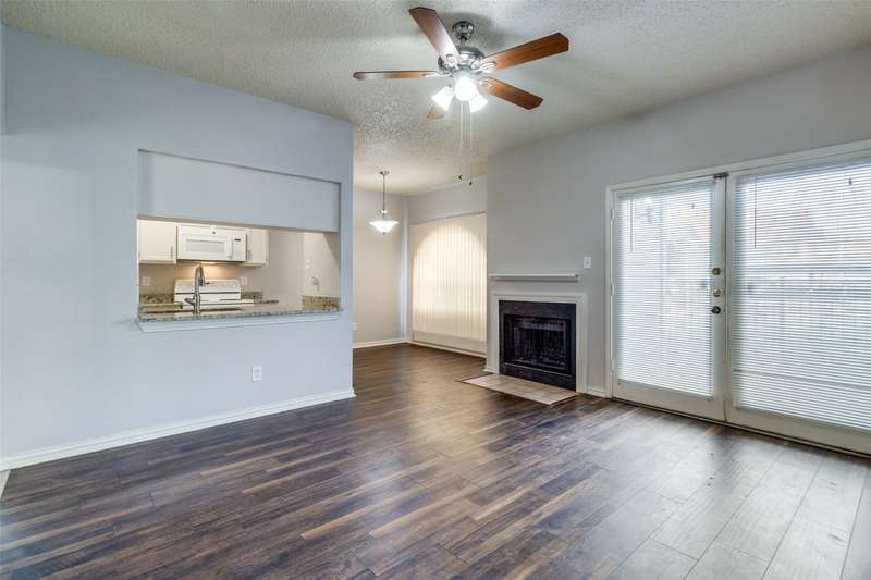 Conveniently located just off Skillman Street with easy access to I-635, this charming one-bedroom condo offers comfort, style, and an ideal location within the sought-after Richardson ISD. Step inside to discover beautiful wood-look tile flooring and an expansive living room, complete with a cozy wood-burning fireplace. The kitchen features granite countertops, an electric range, built-in microwave, and generous cabinet spaceperfect for everyday cooking and entertaining. The spacious bedroom includes a walk-in closet and direct access to a serene back patio with peaceful views of nature. The bathroom also boasts granite countertops, a medicine cabinet, and a built-in sitting area for added convenience. Enjoy a private front patio just steps away from the community pool. Refrigerator, washer, and dryer are included with the unitmaking this move-in ready! Schedule your private tour today and make this beautiful condo your new home!