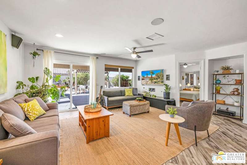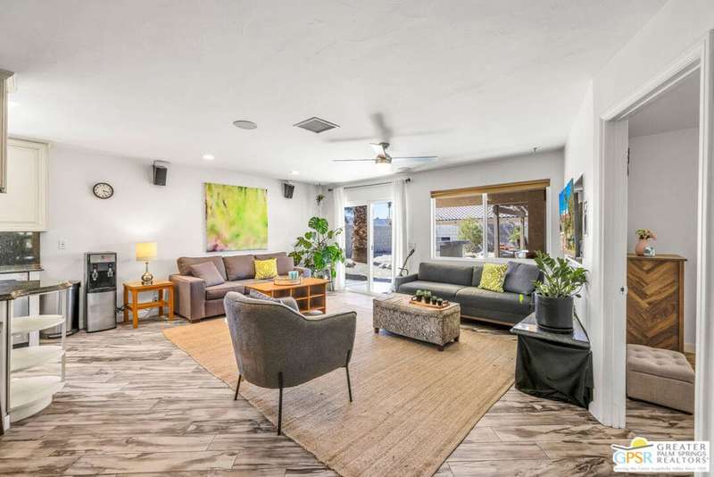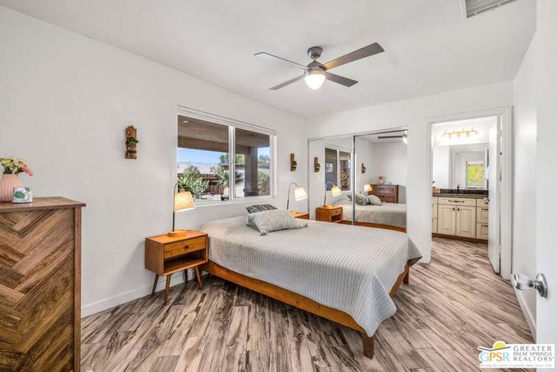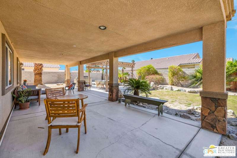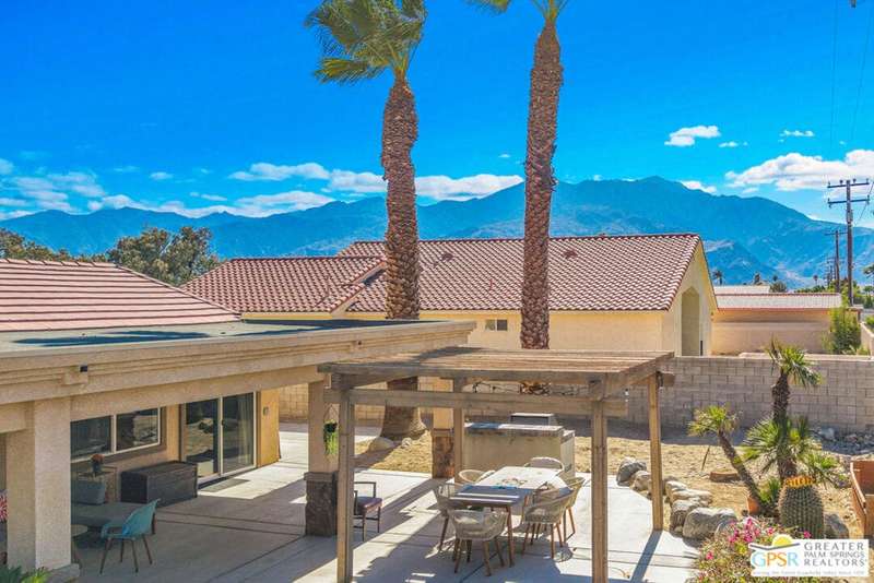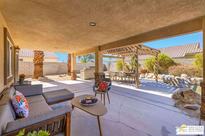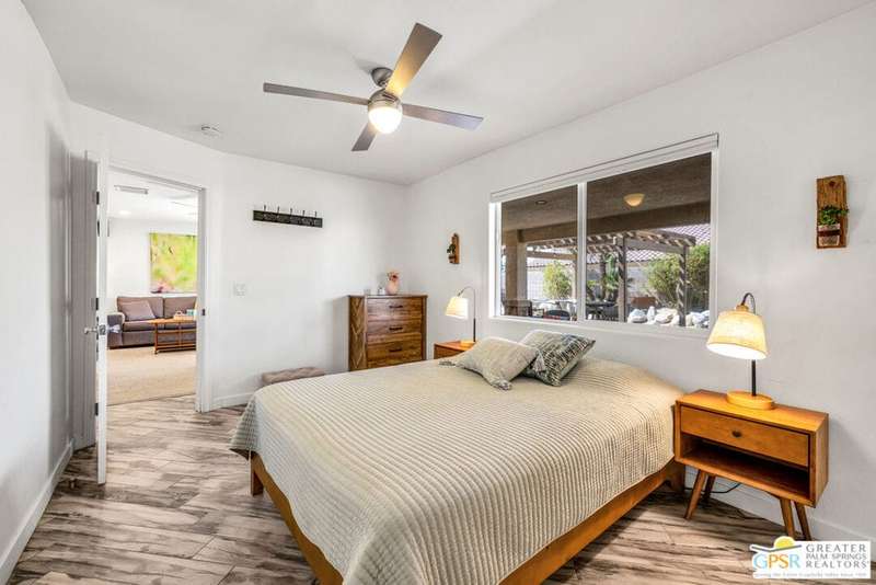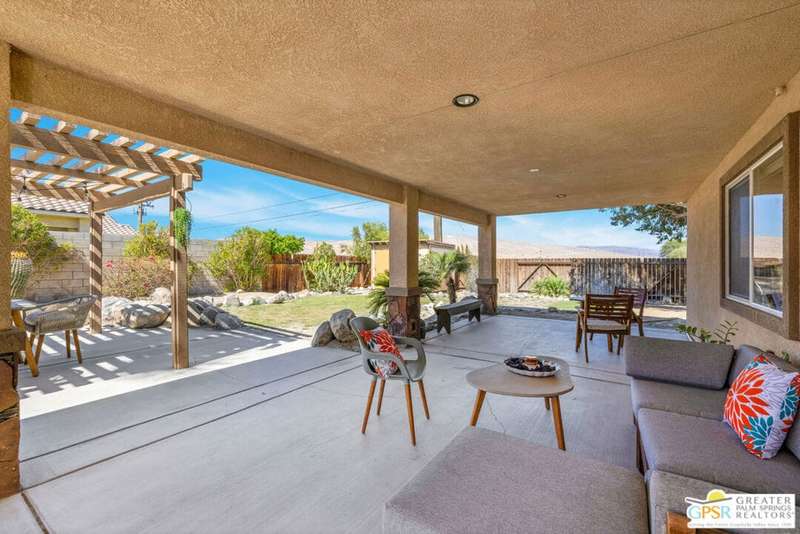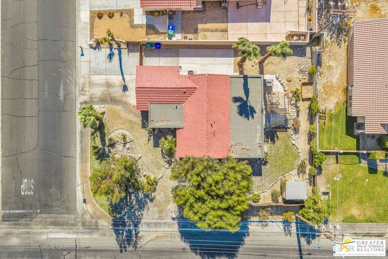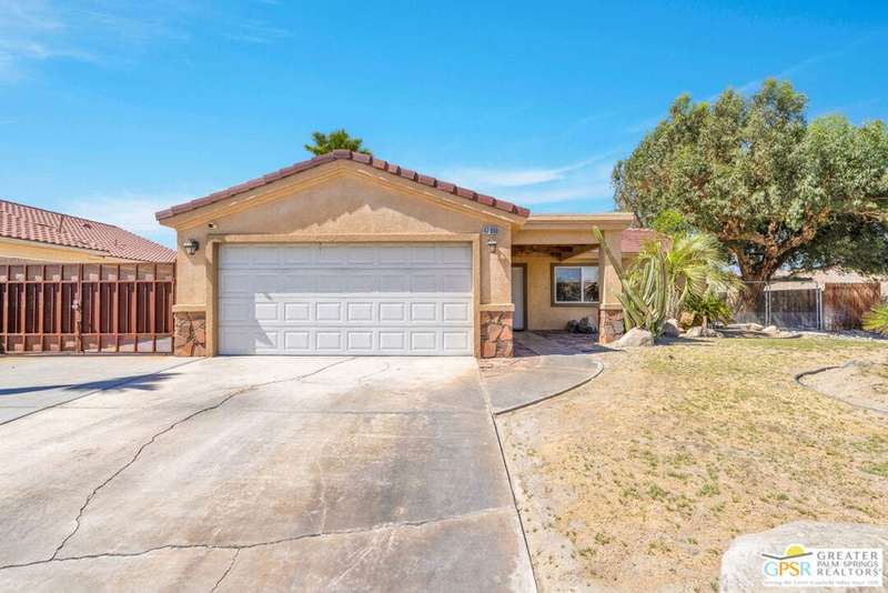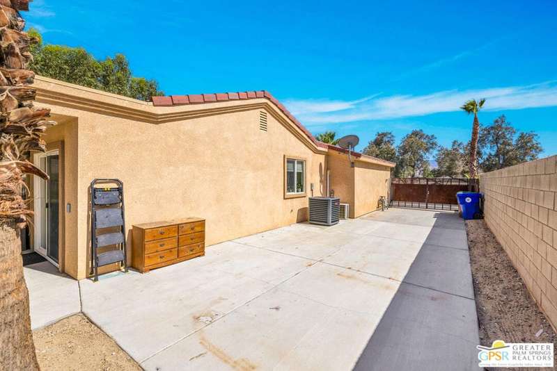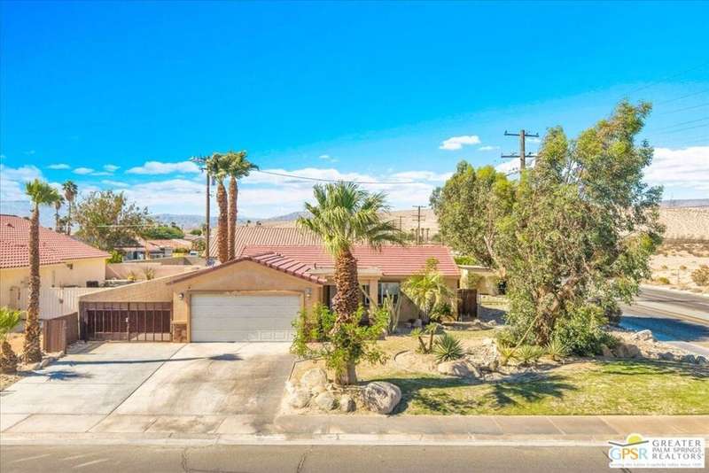 Charming home on a corner lot in the Rio Vista neighborhood in Cathedral City! This home has been updated within the last few years and features a large great room, open kitchen with breakfast bar, stainless appliances, and tons of natural light. The outdoor covered patio is an extension of the interior space with additional lounge and dining spaces. The primary bedroom has an en-suite bath, and two additional bedrooms that share the second bath. Currently the owners are using part of the garage as a home gym, and work space. But the best part is there is a new mini-split AC unit in the garage! The homes' AC unit has also just been replaced. The home is nicely positioned on the lot which offers a large RV parking pad on one side and additional space on the other. Plenty of space to add a pool or hot tub. There is also a small storage shed for those things you just want to hide away. Nice mountain views complete the picture.