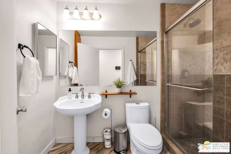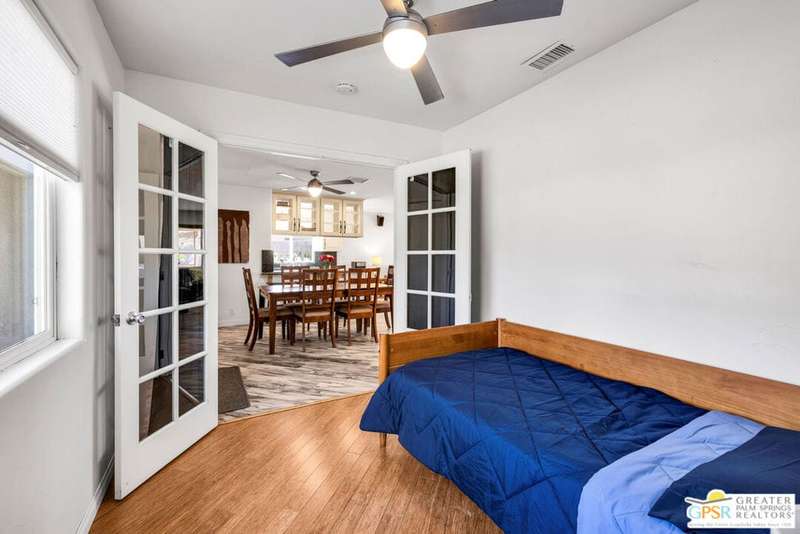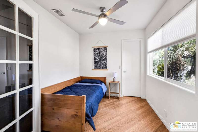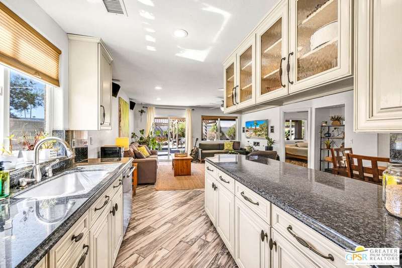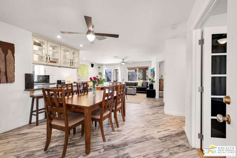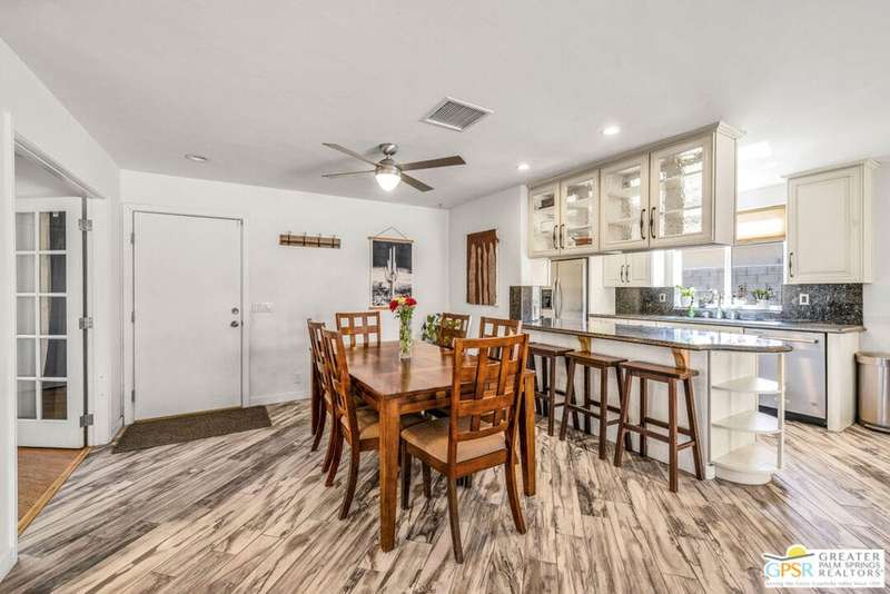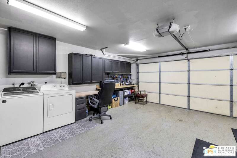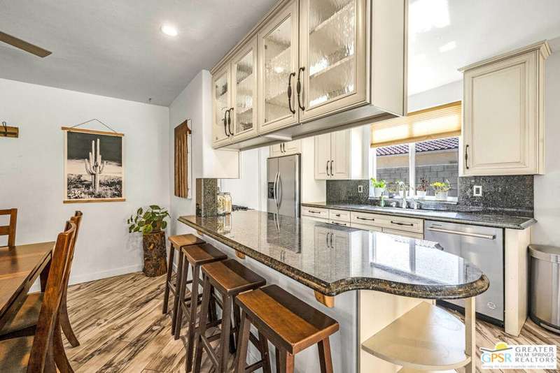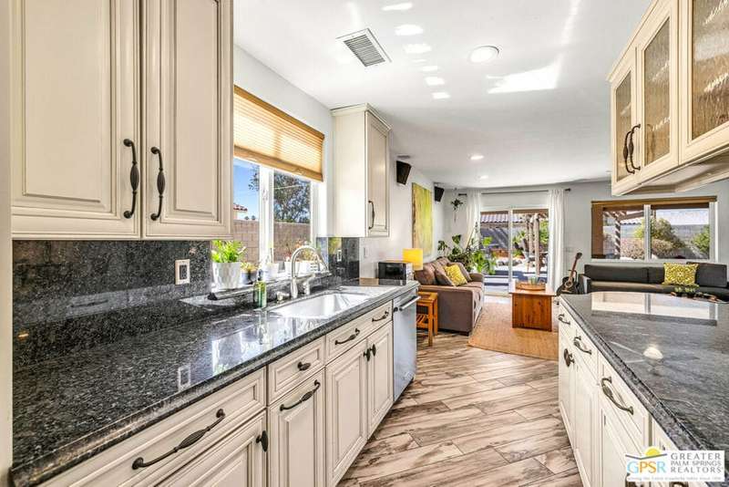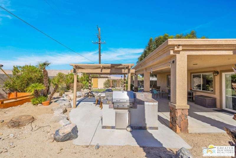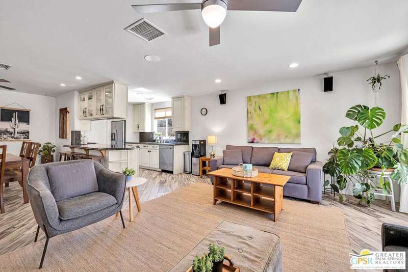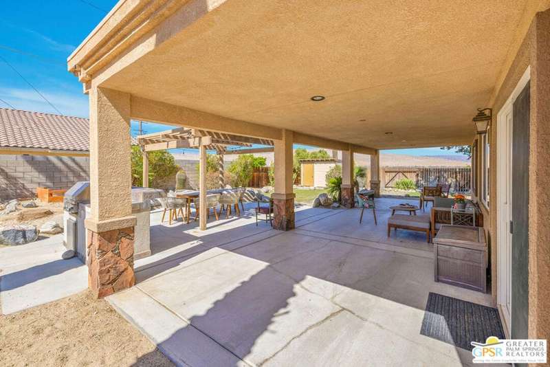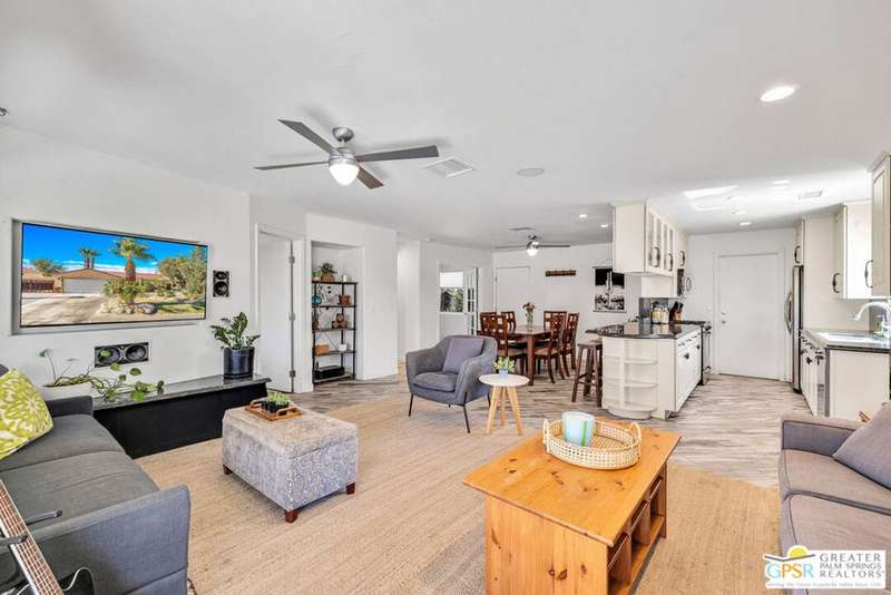 Charming home on a corner lot in the Rio Vista neighborhood in Cathedral City! This home has been updated within the last few years and features a large great room, open kitchen with breakfast bar, stainless appliances, and tons of natural light. The outdoor covered patio is an extension of the interior space with additional lounge and dining spaces. The primary bedroom has an en-suite bath, and two additional bedrooms that share the second bath. Currently the owners are using part of the garage as a home gym, and work space. But the best part is there is a new mini-split AC unit in the garage! The homes' AC unit has also just been replaced. The home is nicely positioned on the lot which offers a large RV parking pad on one side and additional space on the other. Plenty of space to add a pool or hot tub. There is also a small storage shed for those things you just want to hide away. Nice mountain views complete the picture.