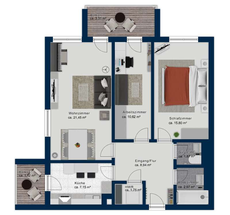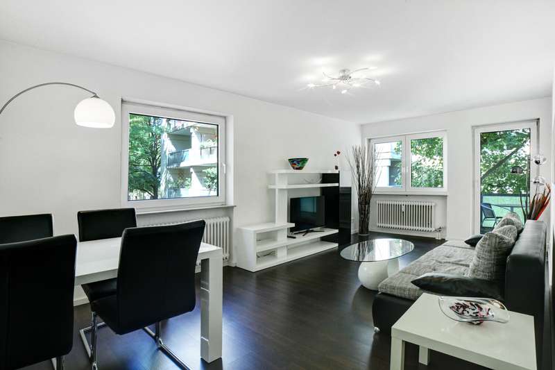 On the 1st floor of a well-kept apartment building in Munich-Sendling, this charming 3-room apartment awaits you with its well thought-out layout and bright and friendly ambience. The functional floor plan is immediately apparent upon entering: There is a bathroom and a separate WC directly to the right - practical and convenient at the same time, especially for everyday use or for shared apartments. Straight ahead is the spacious bedroom, which is bright and a pleasant size. Right next to it is another room, which is ideal as a children's room or study and offers direct access to one of the two balconies. The hallway leads to the living room - the central place for relaxing and socializing in the evenings. There is also access to the balcony from here, which further enhances the living experience. An adjoining hallway leads to a practical storage room with a washing machine connection and additional storage space. The fitted kitchen, which also offers direct access to a second balcony, provides the finishing touch - perfect for breakfast in the fresh air. The apartment not only impresses with its friendly atmosphere, but also with its versatility. Thanks to the good room layout, the separate WC and the excellent connections, it is ideal for couples, small families or even flat-sharing communities - a strong argument for both owner-occupiers and investors. The apartment also comes with a duplex underground parking space, which can be purchased for €20,000 and also offers enough space for an SUV. A spacious storage compartment of approx. 8 m² in the attic offers additional storage space. The total purchase price is € 649,000 plus the duplex parking space (€ 20,000), making a total of € 669,000. The storage compartment and the duplex underground parking space are currently rented out.