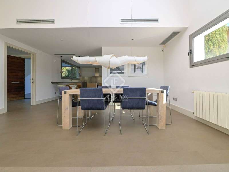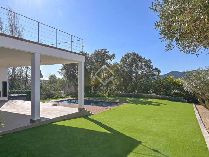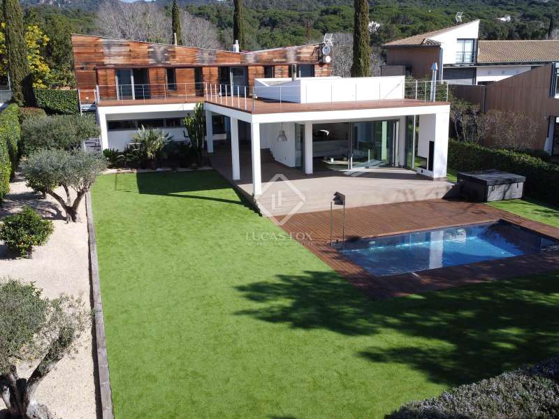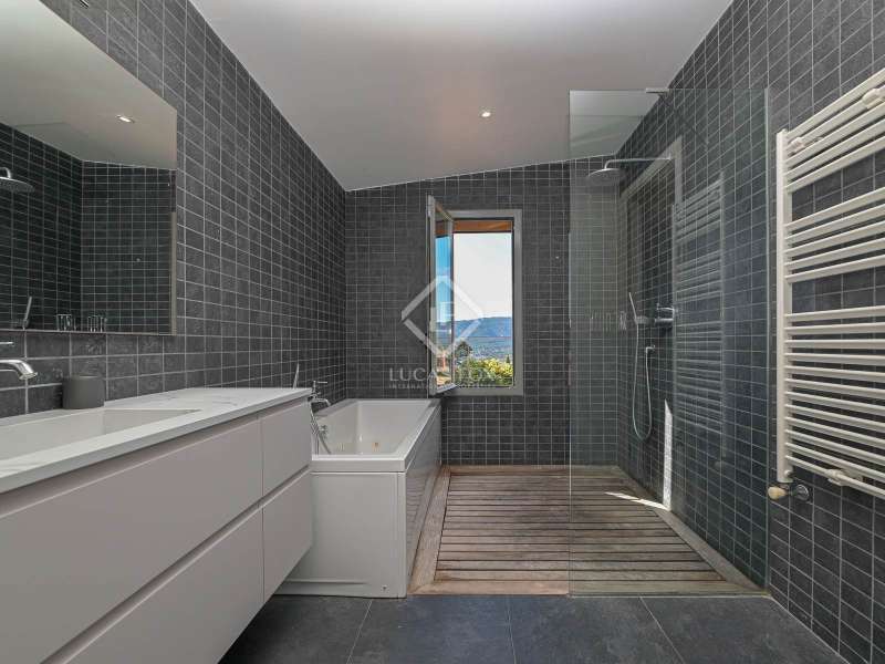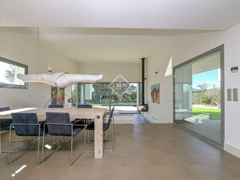Lucas Fox presents this modern-style house, five minutes from the town, the beach, and the golf course , in the quiet area of Santa Cristina de Aro. High-quality materials were used in its construction, and it was designed by a renowned Barcelona architect. In fact, it has been published in several architectural magazines. Its design combines the quality of wood with the elegance of marble. The main floor features an entrance hall, a large living-dining room with a fireplace and access to the terrace, a fully equipped kitchen, a service area with a separate entrance, a bedroom, a bathroom , and a double garage. The covered exterior area features a fireplace and barbecue with beautiful views of the Aro Valley. On the upper floor there are three bedrooms with excellent orientation and access to a terrace, a full bathroom , and the main bedroom with its own bathroom and a very large dressing room. The property enjoys a large, flat plot with a spacious porch, a pool, and a parking area for two cars. The garden is perfectly maintained and includes a pool. The garden is adorned with various types of trees and offers plenty of privacy. It benefits from high-quality features, such as mains gas heating and air conditioning with a heat pump, an alarm, a fireplace , and more. The town of Santa Cristina d'Aro, located just two kilometers from Sant Feliu de Guíxols, is peaceful and welcoming. Its main attractions include a prestigious 27-hole golf club, two equestrian centers, and numerous cycling and hiking trails. Contact us for more information.