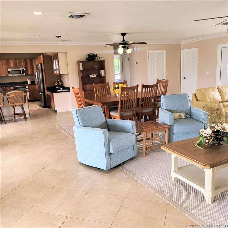 120 FEET OF WATERFRONT ON THE ST LUCIE RIVER WEST OF THE INDIAN ST BRIDGE. 40 FT DOCK INCLUDED (6 FT DEPTH) , FURNISHED 3 BR, 2 BATH HOME CONSISTING OF ONE KING, ONE QUEEN, ONE FULL AND A DOUBLE TWIN TRUNDLE BED. NEW KITCHEN AND BATHS, OPEN AND SPACIOUS HOME WITH A FABULOUS WATERFRONT PORCH EXTENDING THE LENGTH OF THE HOME. THIS HOME CAN BE RENTED MONTHLY FOR 2025 SEASON, FURNISHED. SO MANY OPTIONS TO CONSIDER! FEATURES: CROWN MOLDING, TILE ON DIAGONAL, LV FLOORING, GRANITE, SS APPLIANCES, CHERRY WOOD CABINETS, FLOOR TO CEILING TILED BATHS, METAL ROOF, SHUTTERS, AND CONVENIENTLY LOCATED TO I95, SHOPPING AND DINING. LAWN CARE, TRASH AND RECYLCING INCLUDED.