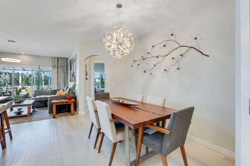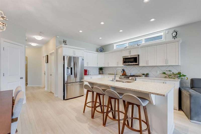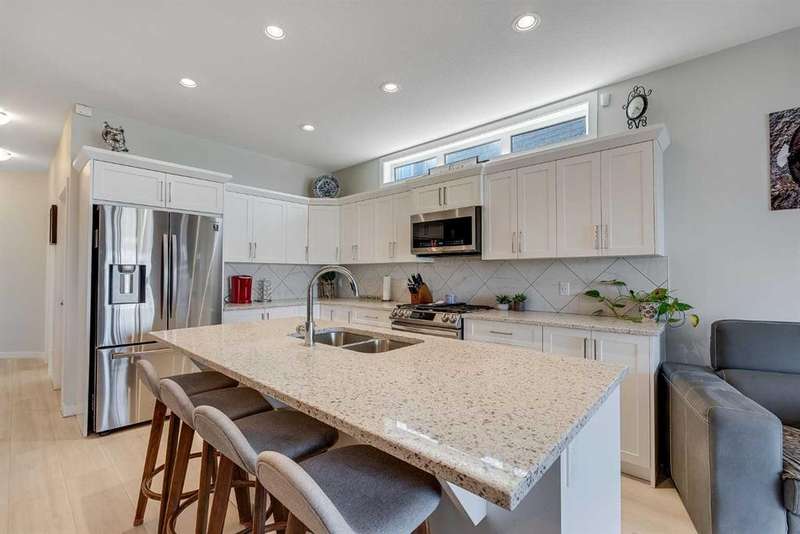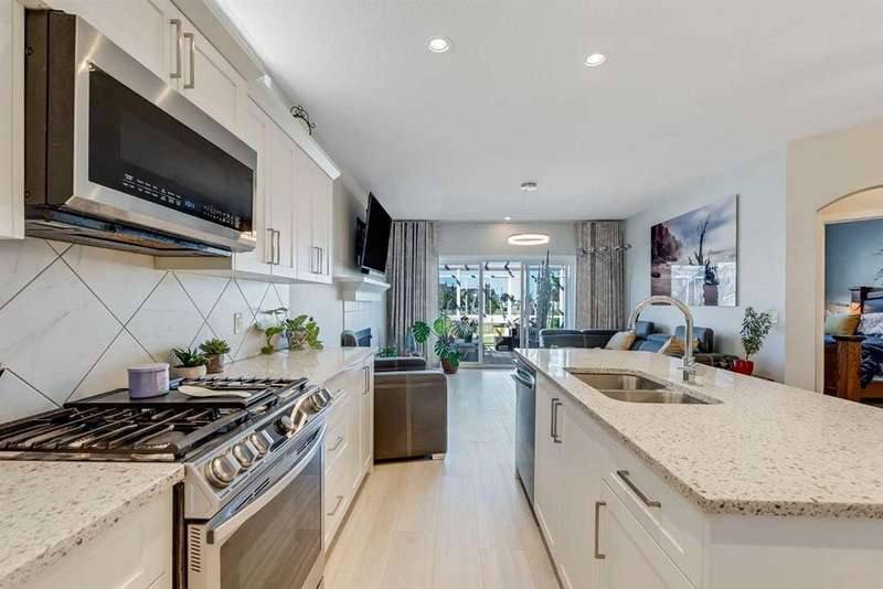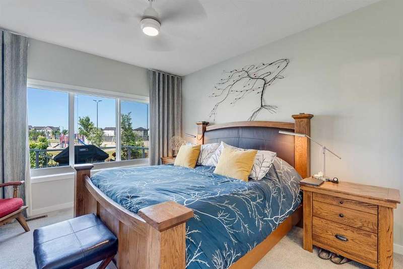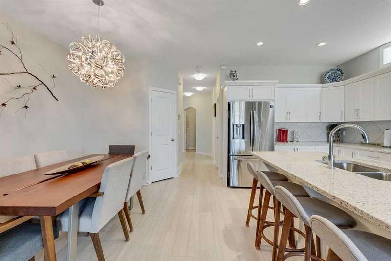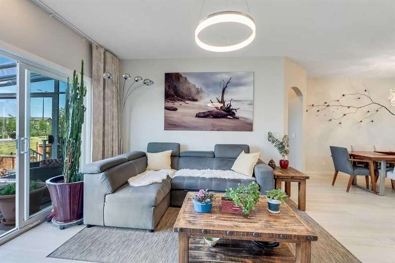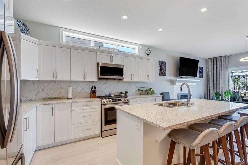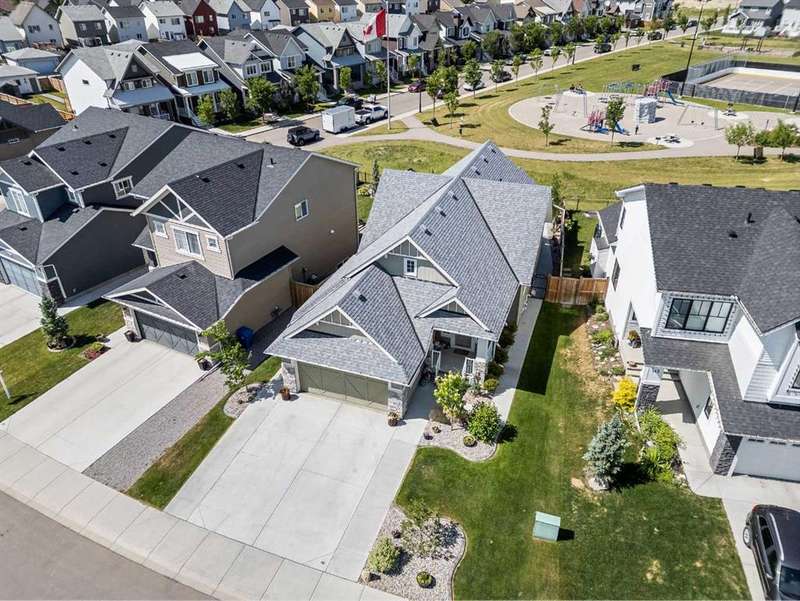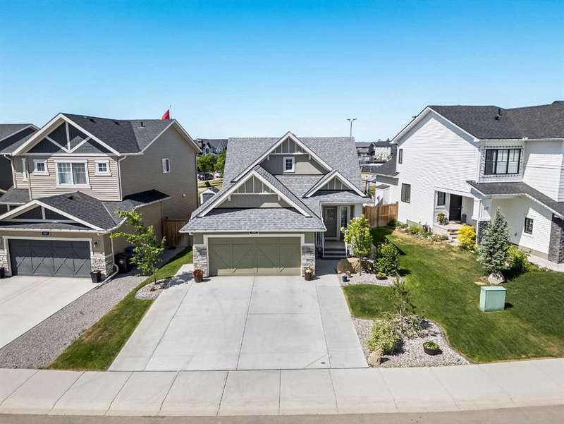 RETIRE IN STYLE! SAY GOODBYE TO THE CITY BUT KEEP IT IN CLOSE VIEW! Step into luxury and ease with this EXECUTIVE BUNGALOW BACKING ONTO AMERY PARK, where every detail has been thoughtfully designed. With 3 BEDROOMS and 3 FULL BATHROOMS, this home blends sophistication with comfort in a way that feels both grand and inviting. The heart of the home is a CHEF'S KITCHEN, featuring GRANITE COUNTERTOPS (granite counter tops throughout the home), a CORNER PANTRY, GAS STOVE, and a LARGE ISLAND with endless storage. WALLS OF WINDOWS fill the OPEN-CONCEPT living area with NATURAL LIGHT, seamlessly connecting to your CUSTOM 3-SEASON SUNROOM. From here, watch the park transform with the seasons and take in BREATHTAKING SUNSETS that feel like your own private show. Step onto the ADDITIONAL DECK - perfectly placed for summer barbecues - and enjoy LOW-MAINTENANCE landscaped yard with IRRIGATION and hidden STORAGE beneath the deck. The PRIMARY room offers a WALK IN CLOSET that won't disappoint, while a second main-level bedroom is perfect for an OFFICE or extra bedroom. Convenient MAIN FLOOR LAUNDRY and A/C are extra bonuses. DO YOU HAVE FAMILY OR GUESTS WHO STAY FOR EXTENDED PERIODS? Downstairs tells its own story - a retreat designed for comfort and versatility. A spacious FAMILY ROOM with an electric FIREPLACE, a WET BAR that rivals full kitchens, and an EXTRA-LARGE BEDROOM with its OWN FULL BATHROOM make this level ideal for extended family, weekend guests or as a teenager's haven. A massive UTILITY ROOM with built in-shelving ensures storage is never an issue. Practical luxury continues with a HEATED DOUBLE TANDEM GARAGE, HOT/COLD WATER, CENTRAL VACUUM (separate attachments for upstairs, downstairs and garage), and an EXTRA-WIDE DRIVEWAY. And then there's the location. Crossfield is where small-town charm meets convenience - with parks, walking paths, and the locally famous Donut Man cafe (worth the highway stop every time!) All just 15 minutes to Airdrie and 30 minutes to Calgary's inner city. This home isn't just a place to live - it's a lifestyle designed for EMPTY NESTERS, RETIREES, or SMALL FAMILIES who value comfort, function, and beauty in every detail. Your new beginning in Crossfield awaits.