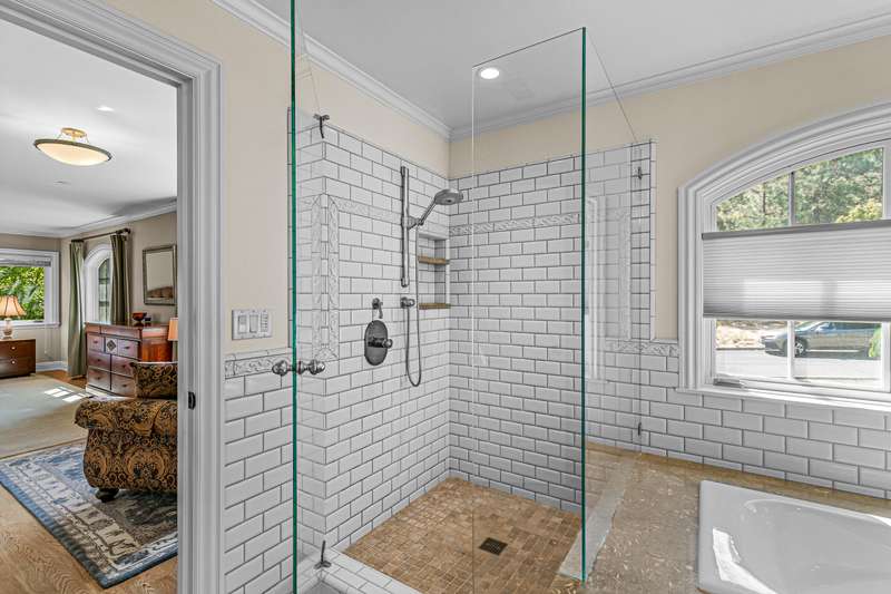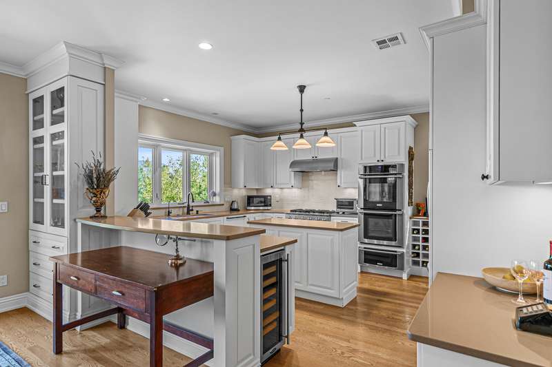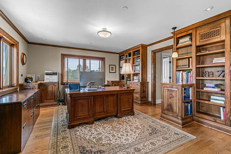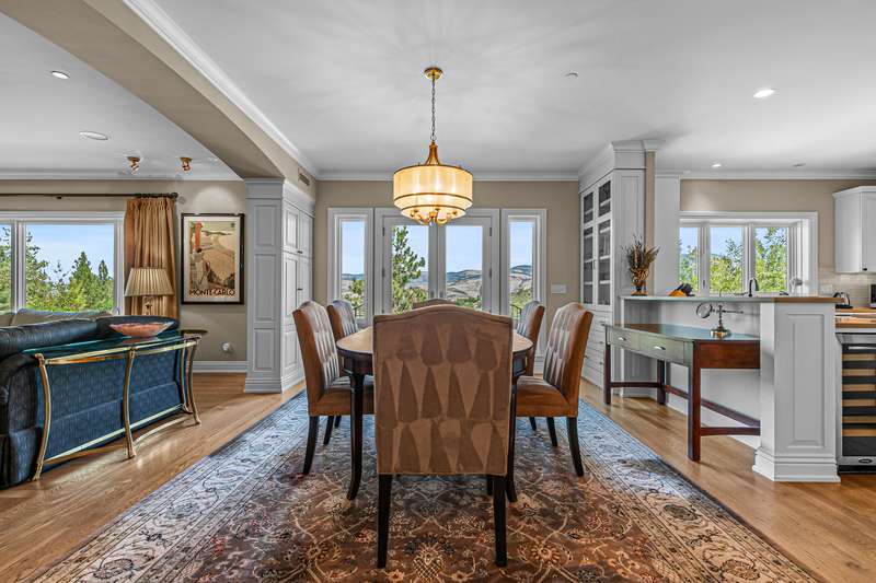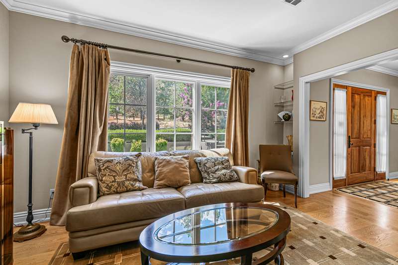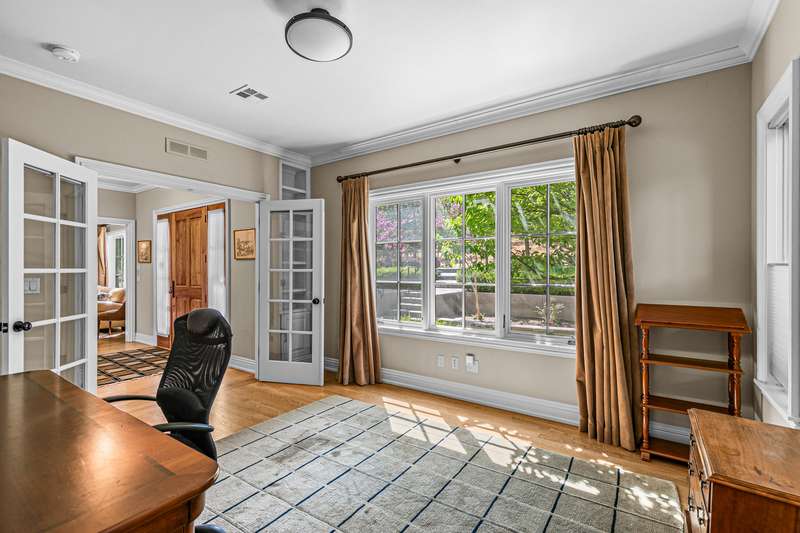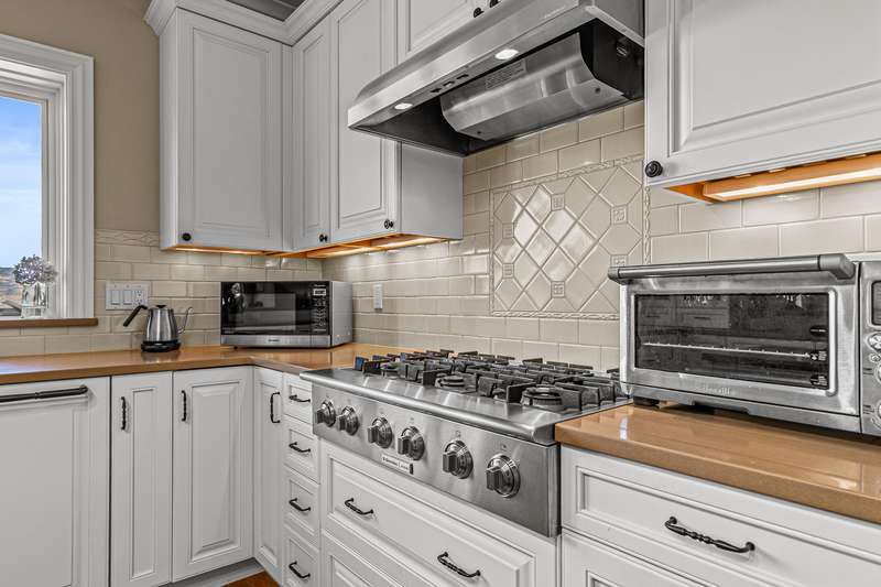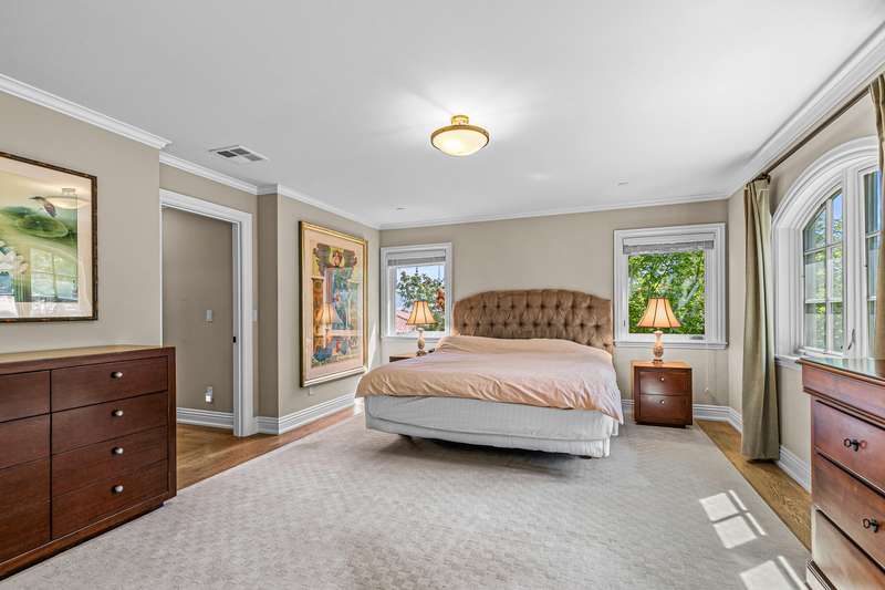 French provincial-inspired custom home located directly above Hald-Strawberry Park, just five minutes from Ashland's downtown plaza. Main level living room with integrated speakers, art lighting, gas fireplace, dining area with French doors to expansive view deck, gourmet kitchen with Electrolux Icon convection ovens and six-burner gas cooktop, powder room, media room, and office or guest bedroom with full ensuite bath. Spacious upper-level office, family room, and library with French doors to view balcony, gas fireplace, extensive custom built-in shelving. Primary bedroom with sitting area, two walk-in closets, and two full ensuite bathrooms with tiled showers, soaking tub, and sauna. Huge lower-level bonus room with washer, dryer, and utility sink. Detached three-car garage with attic storage. Landscaped grounds with mature trees, ornamental plantings, sunny gardening areas, grass lawn, stone and concrete patios. Inquire for details!