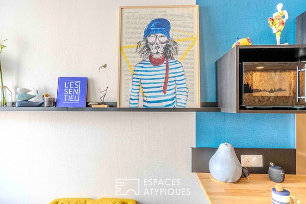 Located right in the heart of Pornic's historic upper town, between the covered market and the church, this 17 m2 gem, inspired by the tiny house spirit, will appeal to lovers of unique and cleverly optimized spaces.