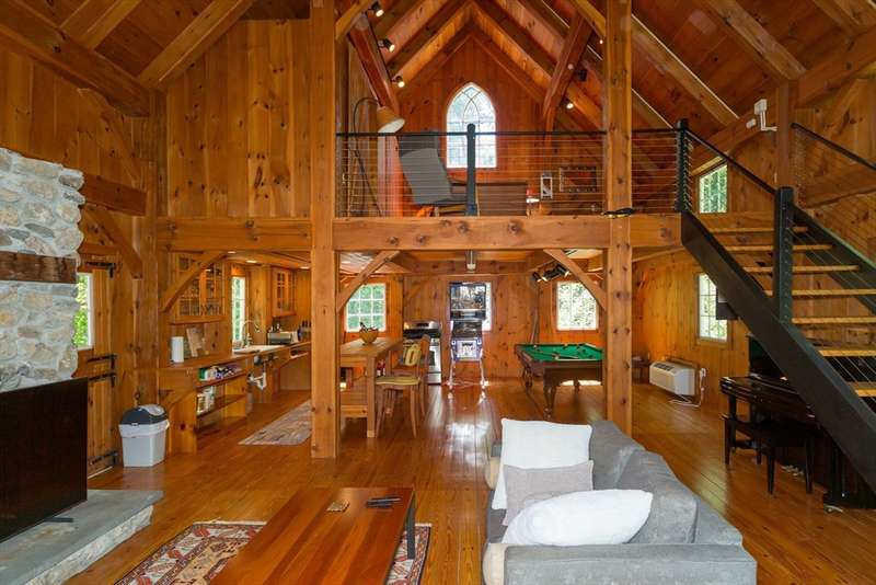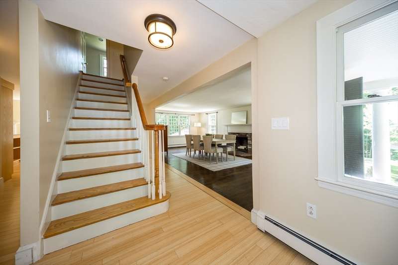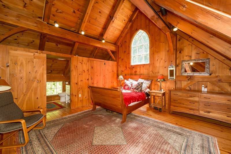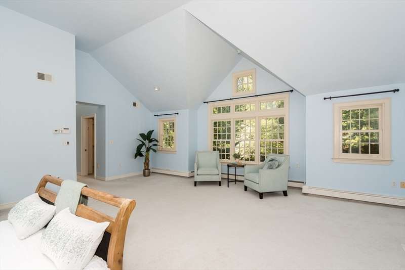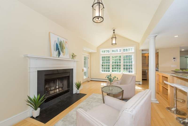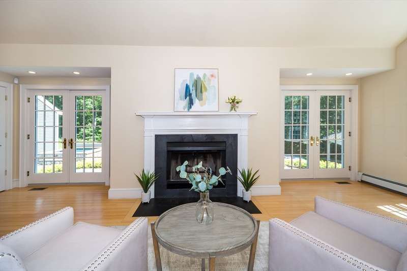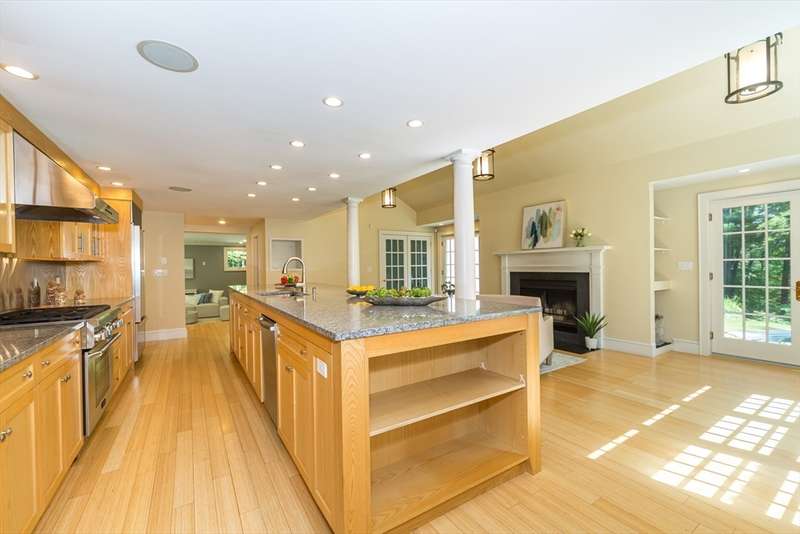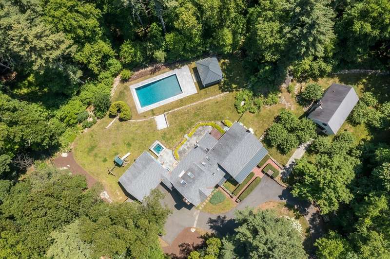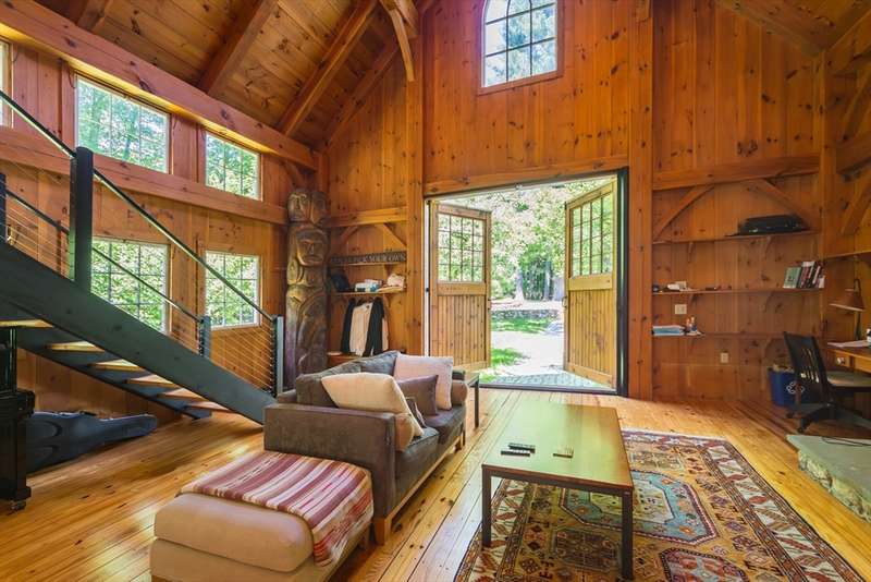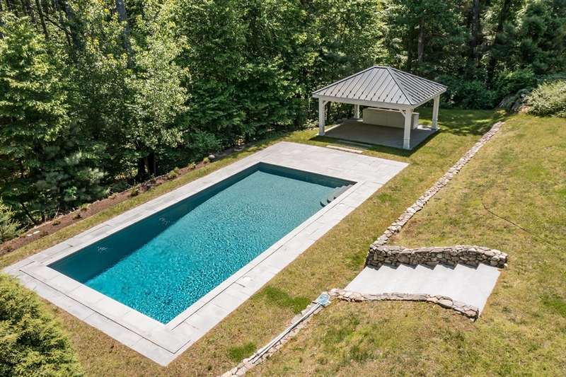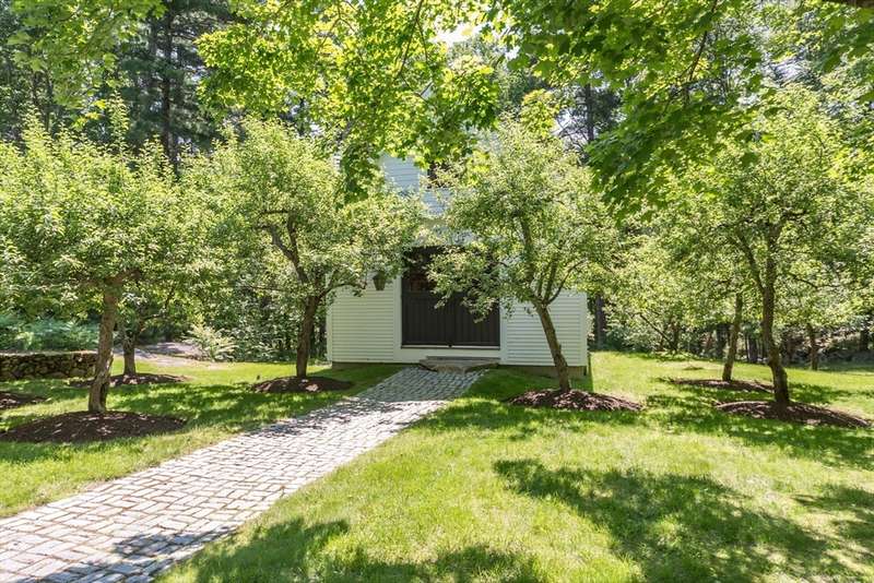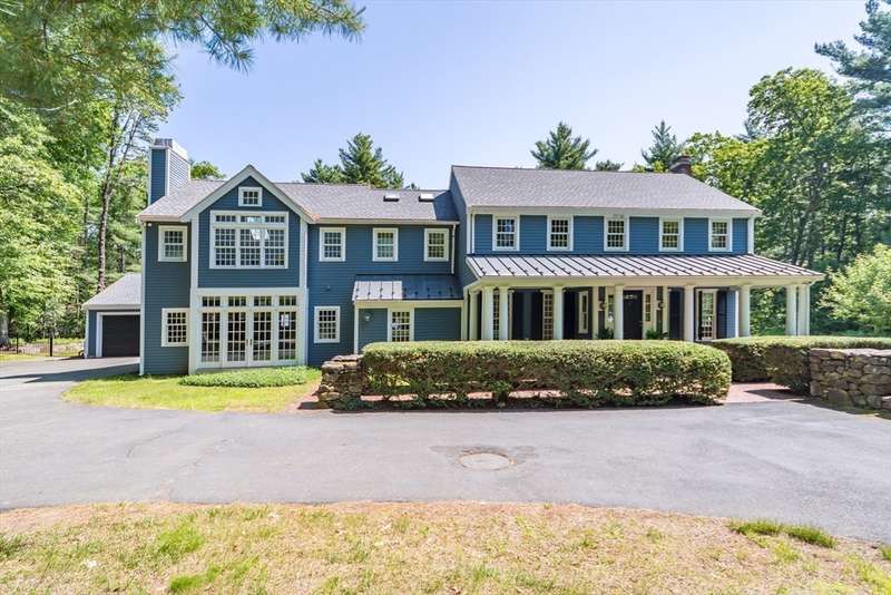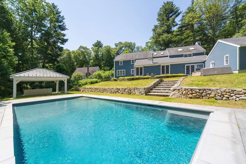 Nestled along a quiet country road, this stunning property offers the perfect blend of rustic charm and refined living. This beautifully crafted home exudes warmth and character. Lots of windows and french doors bring the outside in. The chefs kitchen boasts a fireplace, butler s pantry, large island, and gas cooking. The mud room is huge with plenty of closet space and shelves. The first floor office has its own entry, with a bath nearby. Main bedroom has a cathedral ceiling and another fireplace. The very private outdoor living space includes a saltwater pool that is just steps away from the patio and a year-round spa. Offering separate additional living space is a VERY COOL 3 Level Circle B barn, with a stone fireplace, open living area, a loft. The professionally landscaped grounds are accentuated with cobblestone and brick pathways, and direct trail access. All this and one of Massachusetts best school systems!!