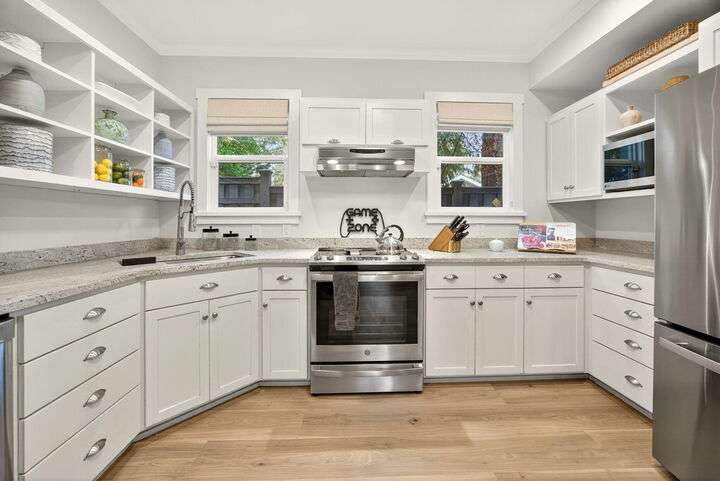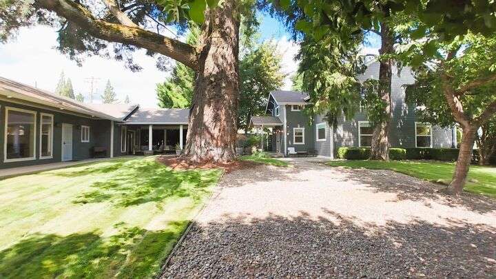 Stunning and versatile, this 4,604 SF property in the heart of Rogue River shines with over $400K in renovations and modern upgrades. On a .41-acre corner lot with C-1 zoning, it offers unmatched potential for mixed-use, commercial, or residential purposes. The main building features 3 bedrooms, 2 full baths, and 2 half baths, with open-beam ceilings, granite counters, new appliances, ample storage, and a primary suite with a stone soaking tub, tiled shower, laundry chute, and walk-in closet. A fully renovated 2,504 SF detached building includes a kitchenette, office, conference room, full bath, gym, open workspace, and music studio with double 2x6 walls and recording booth. Outdoors, a pavilion-style patio with vaulted T&G pine ceiling and recessed lighting anchors the fully fenced, beautifully landscaped grounds, highlighted by a magnificent heritage tree—creating a private, park-like setting that is truly unforgettable. Schedule your private viewing today!