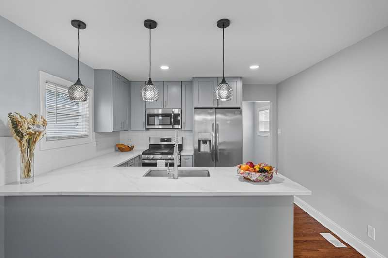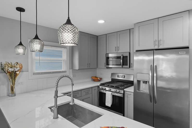 You're going to love this updated 3 BR/1.75 ranch style home that is truly move-in ready! Upon entry, you'll note the beautifully refinished hardwood flooring that spans the living room, kitchen, and all three bedrooms. Recessed lighting is featured in many rooms, creating a warm and inviting atmosphere. The bright and open kitchen includes quartz countertops with a farmhouse sink, pendant lighting, modern cabinetry, stainless steel appliances, and convenient countertop dining. The updated full bath boasts a beautiful tile tub surround and easy-care ceramic flooring. The finished basement adds incredible living space with a huge recreation room, recessed lighting, and durable vinyl flooring--offering endless layout options. The nicely redone 3/4 bath is spacious. It includes a gorgeous tiled shower, vanity, cute decorative/storage cabinet that surrounds the commode and gleaming ceramic tile flooring. A large laundry room with utility sink provides plenty of space for sorting and folding, while the utility room houses the furnace, water heater and storage area. Other notable features include newer copper plumbing, sewer line and an updated electrical panel. Enjoy outdoor living on the covered patio, leading to the extra-deep 1.5-car garage and fenced backyard. You'll appreciate its great location - near Purdue University Northwest, Interstate 80/94, shopping, dining, and more! The City of Hammond offers the College Bound Scholarship Program that may be of benefit. Visit the City of Hammond's website for details.