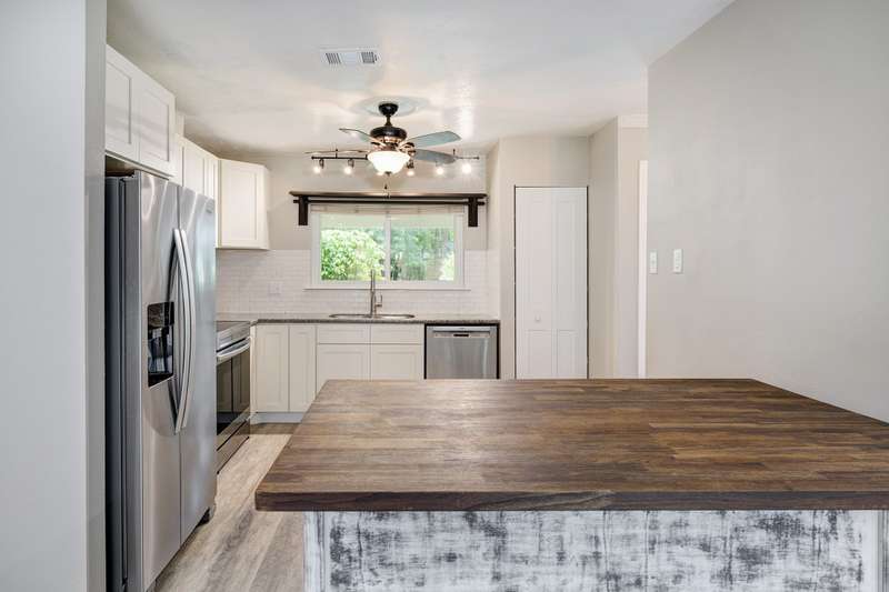 Beautifully renovated on a quiet cul-de-sac in Grogan’s Mill! This light-filled home features an open-concept layout with a spacious kitchen, complete with a convection oven with air fryer feature. Includes stackable washer/dryer and new refrigerator. Three generous bedrooms and updated full and half baths provide comfortable living. Recent upgrades include a new roof, windows, sliding glass doors, and flooring. The lush native landscape is ideal for gardening, with four raised beds and a mature fig tree. Enjoy the peaceful setting with quick access to Market Street, The Woodlands Mall, Cynthia Woods Pavilion, restaurants, and shops! Per Seller