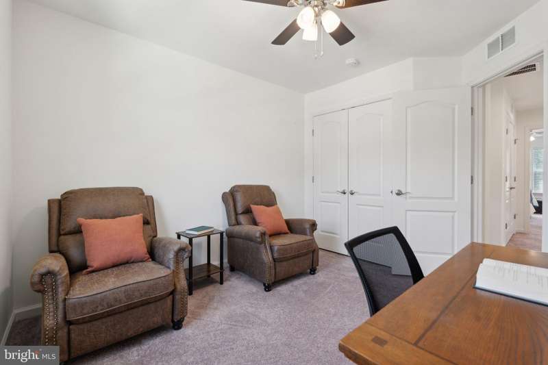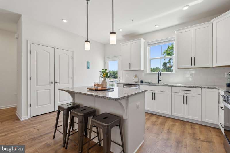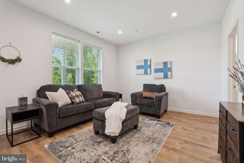 **VA Assumable Loan at 5.25%** Absolutely stunning and barely lived in luxury garage townhome nestled in the quiet corner of the new Severn Crossroads Community. As soon as you arrive you'll see the gorgeous upgraded stack-stone front topped with lovely hardiplank siding and a large two car garage. Once inside you'll be welcomed by the bright and airy floor plan partnered with luxury vinyl plank throughout the common areas. The main level is what dreams are made of. Open floor concept combining kitchen, living, and dining rooms topped off with plantation shutters and access to a private composite deck for easy grilling or relaxing. Tasteful granite countertops, stainless steel appliances, 5 burner stove, 42 inch shaker cabinets, modern recessed lighting, built in gas fireplace, another half bath, large pantry, 65" adjustable mounted TV with soundbar and subwoofer convey as well! The TV can be viewed from anywhere on main level! The first floor offers a perfect walk-out basement backing to green space that will only get better as the newly planted trees grow. Use this lower level as a rec room, gym, or office. It also features a powder room for convenience. The upper level boasts a huge primary ensuite with a massive dual vanity bathroom, stand-in shower with built-in bench, and oversized walk-in closet. This floor also features an ideal laundry room on upper level along with the well sized second and third bedroom. Property is pre-wired with ethernet wall jacks, features a tankless hot water heater, and is immediately available. Prime location! Directly across the street from Severn-Danza Park, less than 5 miles to Fort Meade Military Base & NSA, NASA, and minutes away from, Arundel Mills, Downtown Baltimore, Crofton, BWI Airport, major transportation routes, Maryland Live and Merriweather Post Pavilion.