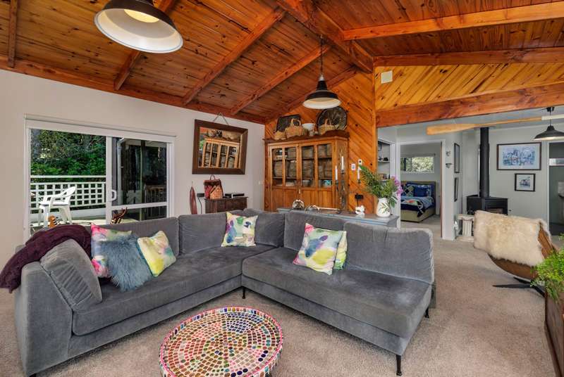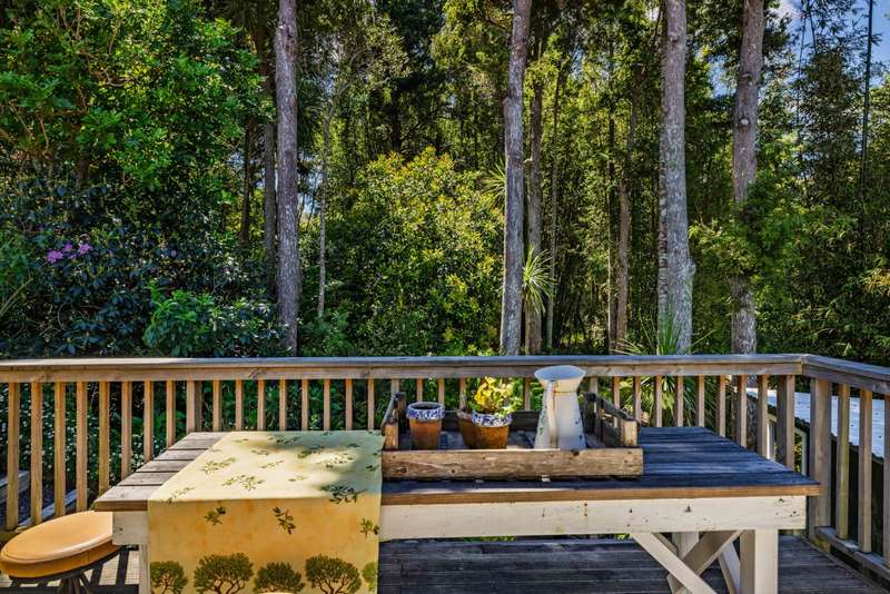 The translation of Rawene is beautiful sunset, and this property delivers as promised! Tucked away in a private and peaceful setting, this stylish home offers comfort, charm, and stunning Hokianga Harbour vistas. Perched on an elevated site backed by native bush, the home enjoys the peace and harmony of being surrounded by nature. Wrap-around decks feature cozy nooks and corners, creating warm, intimate spaces - perfect for relaxing on the deck or entertaining guests. Downstairs, a screened patio leads to a generously sized, carpeted bedroom bathed in natural light and fitted with a heat pump. The striking adjoining bathroom features terracotta tiles, a wooden vanity with a stone basin, and a laundry nook. Stairs guide you up to the main level: a light-filled, open-plan kitchen, lounge, and dining area. This space exudes a warm, welcoming atmosphere. The kitchen offers a blend of classic charm and modern ease, featuring rustic cabinetry, contemporary appliances, and colourful tiles lining the panoramic water view, creating an appealing, eclectic vibe. The living space boasts a wood-lined, high-stud ceiling and ranch sliders that ensure fantastic indoor-outdoor flow to both the front and back decks. A wood burner, heat pump, and carpeting keep the home snug year-round. The master bedroom is a private retreat with a walk-in robe and a ranch slider opening to a private back deck, with steps down to a magical walk through the native bush. The main bathroom is stylish and bohemian, with moss green walls and distressed wooden shutters. Outside is practical and low-maintenance, with a concrete driveway, space for two cars, and town services. The roof was recently painted two years ago. The historic township of Rawene is just a few minutes’ drive away, and boasts cafes, a takeaway and a small supermarket, a library, a museum and a couple of galleries. There is also a hospital with GP services and a regular car ferry service which runs to Kohukohu and the north. Perched between mature native trees and the splendid Hokianga Harbour, this beautiful property is an ideal choice for a small family home or a space with Air BnB potential.
