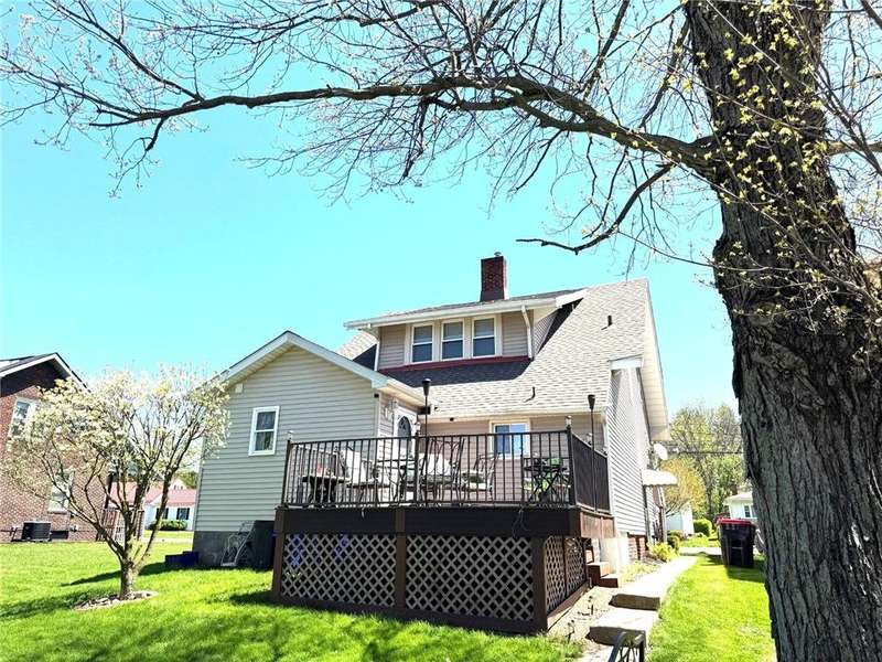 Welcome Home to this Charming, Comfortable 2 story vinyl sided home offering 3 bedroom and 3 bathrooms. The main floor features an open floor plan with a large, updated oak kitchen featuring substantial cabinetry, counterspace and breakfast bar. Perfect for someone who loves to cook and bake or simply entertain. Formal living room and dining room add additional space. Original woodwork throughout. Possibly some hardwood floors. First floor laundry with full bath finishes off the main floor. Second level offers 3 sizable bedrooms with surprising walk-in closets as well as full cedar lined closet in hallway area. Home is partially remodeled, updated with new features and ready to move in. Enjoy relaxing on the outside newer deck overlooking a level yard. Two car garage is an added feature with easy alley access.