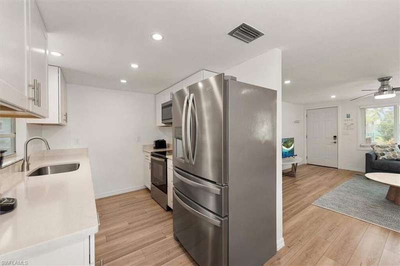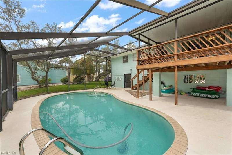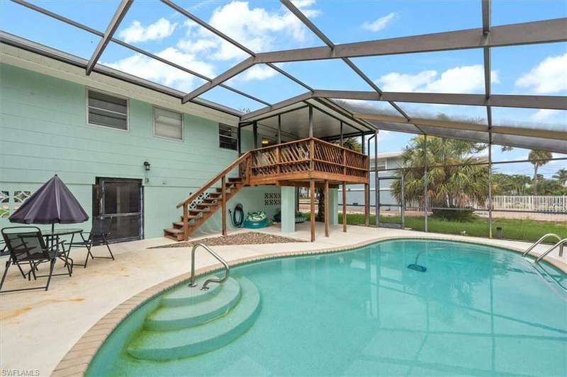 BEST priced elevated WEEKLY rental zone pool home on Ft Myers Beach, only steps from the white sands of the Gulf! This turnkey furnished heated pool home on Ft Myers Beach has been completely remodeled with LVT flooring throughout, bright white shaker cabinetry and an open floor plan. The kitchen also features quartz counters and stainless appliances and overlooks the main living space! Both ample sized bedrooms have their own private bathrooms with custom tiled walk-in showers and amazing natural light. Step outside to your screened upper balcony to enjoy your morning coffee and Tropical views. This remodel was fully permitted and includes a new roof, plumbing,electrical,AC system, and so much more! Perfect for the snowbird, investor, or a combination of the two. Did I mention the huge lot? Schedule your appointment today!