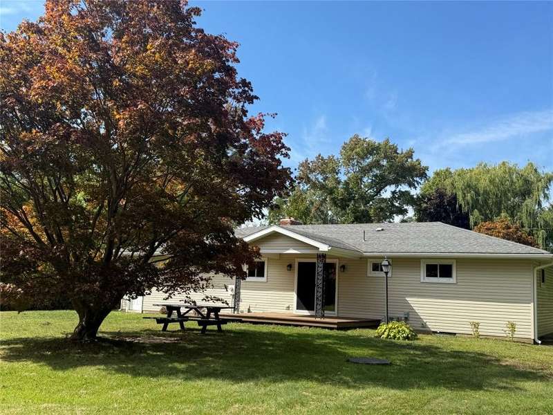 Beautiful setting on quiet street with views of Lake Erie. Walk across the street and sit on the bench to watch the magnificent sunsets. The living room features brick fireplace and bay window overlooking the expansive front yard. This home has been lovingly remodeled. A new McKinley Cherry look kitchen with Pantry. The dining area with sliding glass doors lead to the covered deck. The three bedrooms have generous sized closets. Bathroom was remodeled in 2021. Freshly painted interior, new vinyl flooring and carpet. The exterior is new vinyl siding, gutters. Roof is 8 years old. The house is heated ONLY with its own gas well on the property. There is a gas hook up at the street.