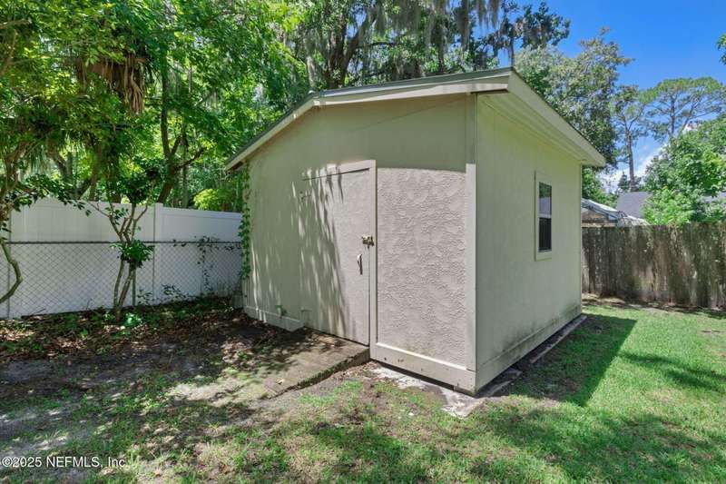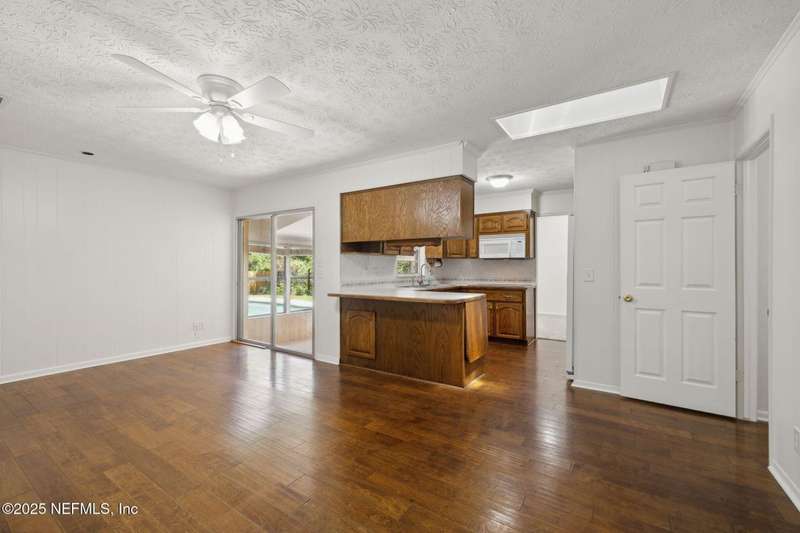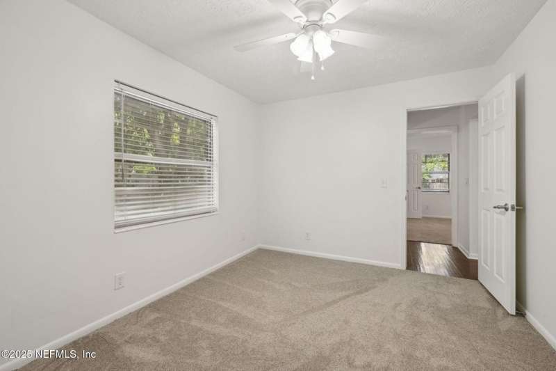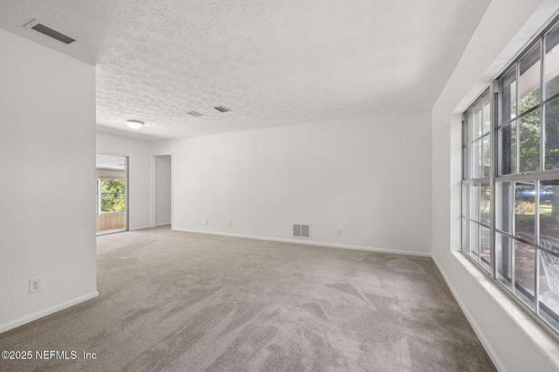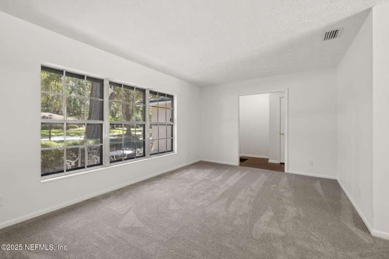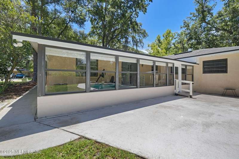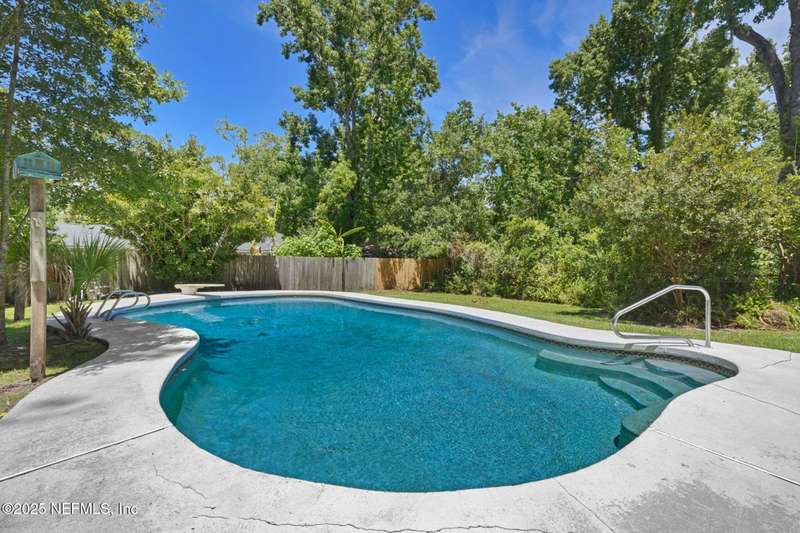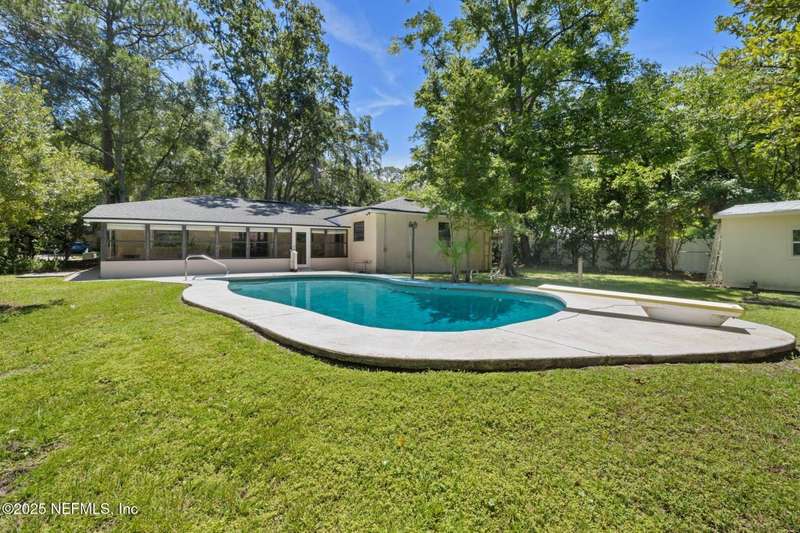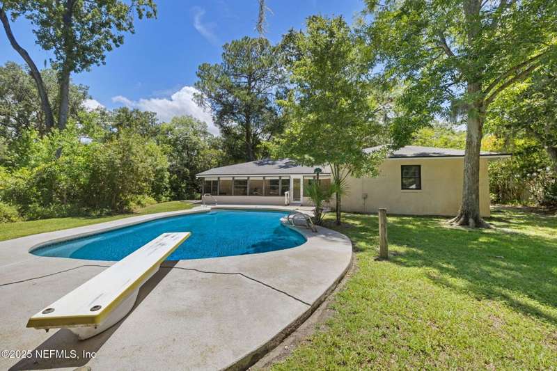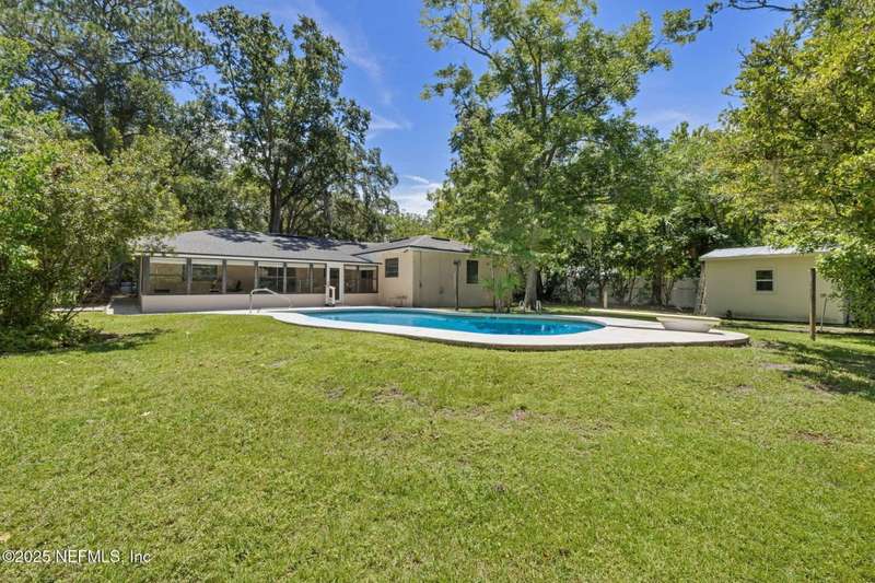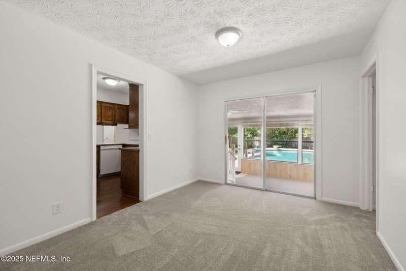 Updated Mandarin home with in ground pool! Spacious Living Room and Dining Room off of entrance Foyer. Family Room opens to kitchen with breakfast bar. Owners Suite has its own bathroom with newer glass shower doors. Bedroom #2 has walk in closet. Bedroom #3 has closet with built in drawers & storage. Sellers opened closet into laundry room. Can be converted back to separate closet. Access door to laundry room located in garage. New carpet in lr/dr and bedrooms. Freshly painted interior. Florida room with lots of windows to enjoy the pool and backyard, and is not included in square footage. Roof replaced in 2020. HVAC is serviced annually by Thigpen Heating and Air. Exterior of home is coquina style construction (per original owner info).
