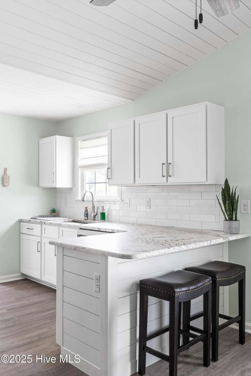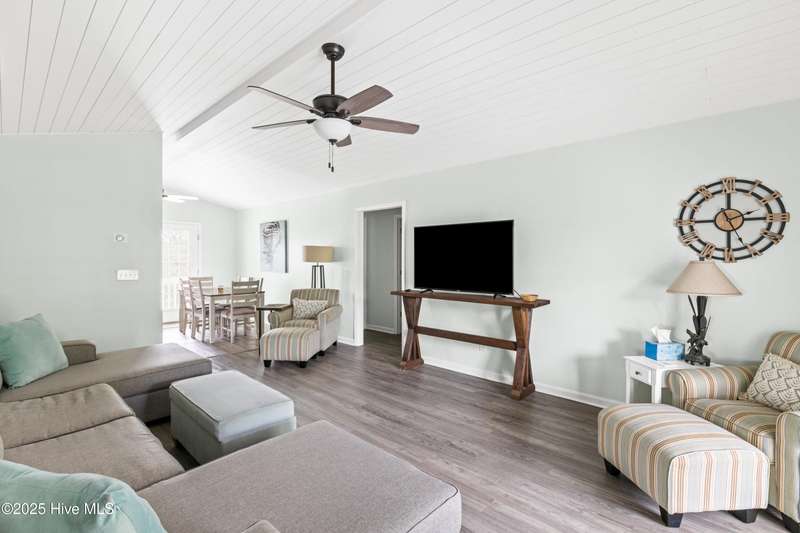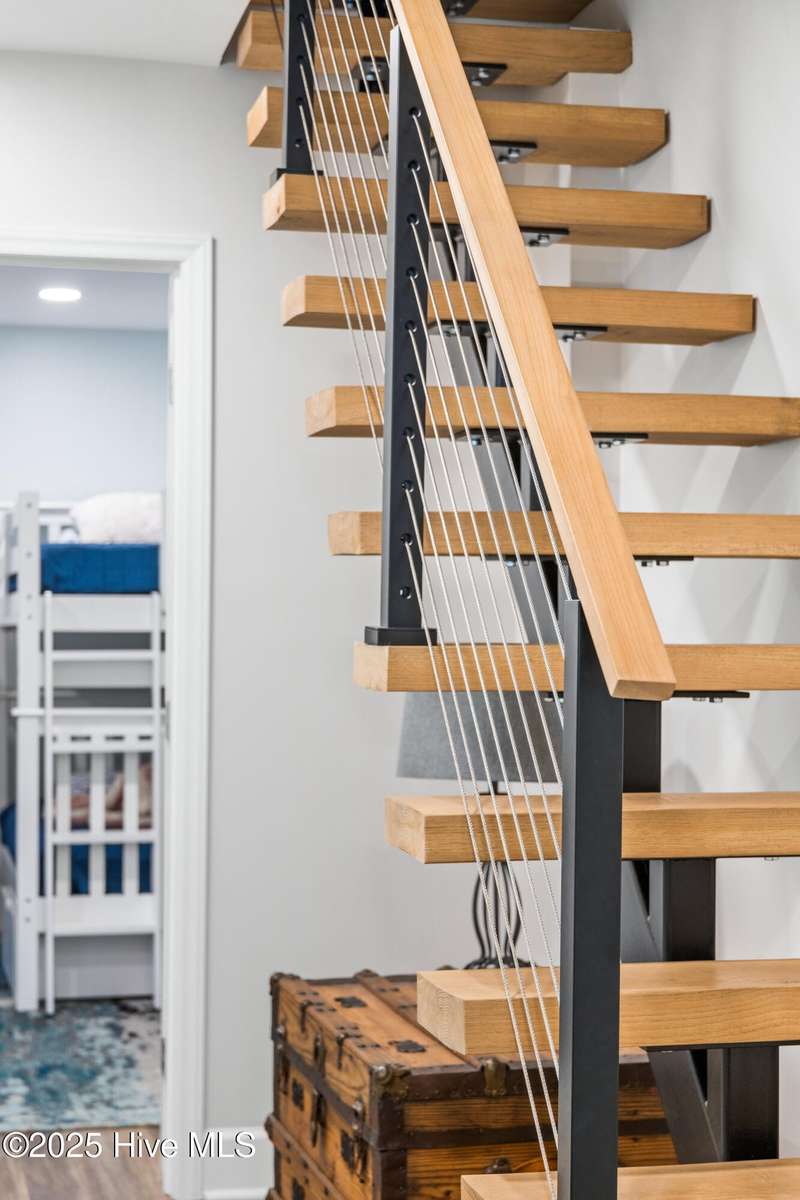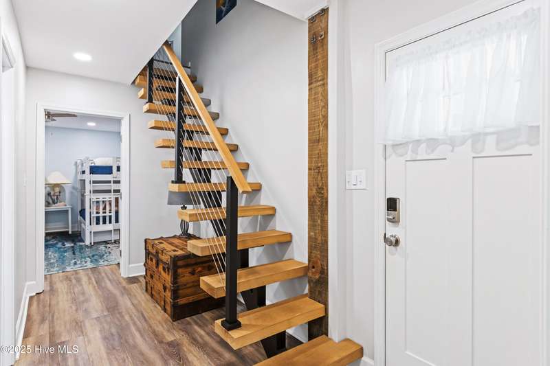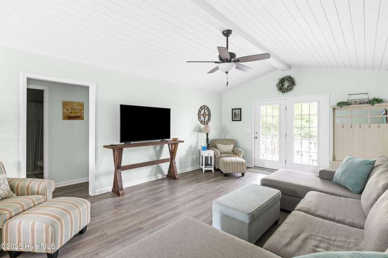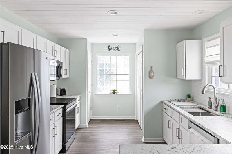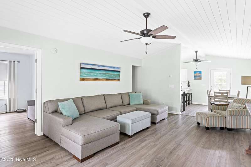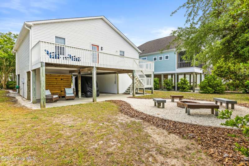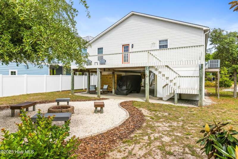 Welcome to 117 NE 52nd St...a beautifully renovated 5-bedroom, 3 full-bathroom piling home, situated on the desirable NE side of the island with close proximity to shopping, dining and the beach while offering a blend of relaxed coastal living and modern sophistication. Upon entering the home, you're greeted by the spacious living room that separates the primary suite from the other two bedrooms and full bathroom upstairs. Head downstairs to find two more bedrooms and another full size bathroom. Interior improvements include remodeling both upstairs bathrooms and the downstairs addition of two bedrooms, full bathroom and interior accessed stairway in 2021 which was permitted, new water heater in 2023, upstairs walls and ceilings repainted and shiplap added in living, dining and kitchen area ceilings all in 2024, kitchen remodel to include new stainless steel appliances, leathered granite countertops, updated cabinets with shaker style doors in 2025. Outdoor living shines with front and back porches, ample parking for your friends and family along with a beautifully landscaped backyard that is ideal for entertaining. Exterior improvements include a new front porch/stairs in 2022, expanded parking/gravel, outdoor shower enclosure in 2024 and a brand new HVAC unit in 2025. This home is ready to move right in! If you have a large family, are looking for the perfect investment property or just want a couple extra bedrooms for your friends to visit, THIS IS THE ONE! It is RARE to find a 5-bedroom home on the NE side of the island, making this a true gem! See attached list in MLS documents for full list of upgrades.