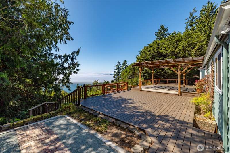 Welcome to this lovely 2br/3ba home featuring privacy and unobstructed westerly views of Burrow's Bay and the San Juan Islands. This rare acre plus property is partially fenced and gated, level and useable. French doors from the dining room lead to a brand new entertaining deck. Primary bedroom on the main, living room and sitting rooms with propane fireplaces, laundry, office, sunroom, recently updated kitchen. Guest space and bath with separate entrance down as well as a multi purpose room and a small craft workshop. Mature landscaping with automatic irrigation for the lawn and flower garden. 10 min into Anacortes for dinner, shopping, and ferry to the islands. 6 min to Whidbey Island and Deception Pass State Park. Beach access close by.