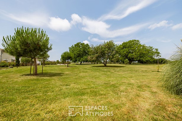 Benefiting from a renovation made with high-end materials, the property develops a generous living space spread across three distinct spaces on nearly one hectare of landscaped grounds.