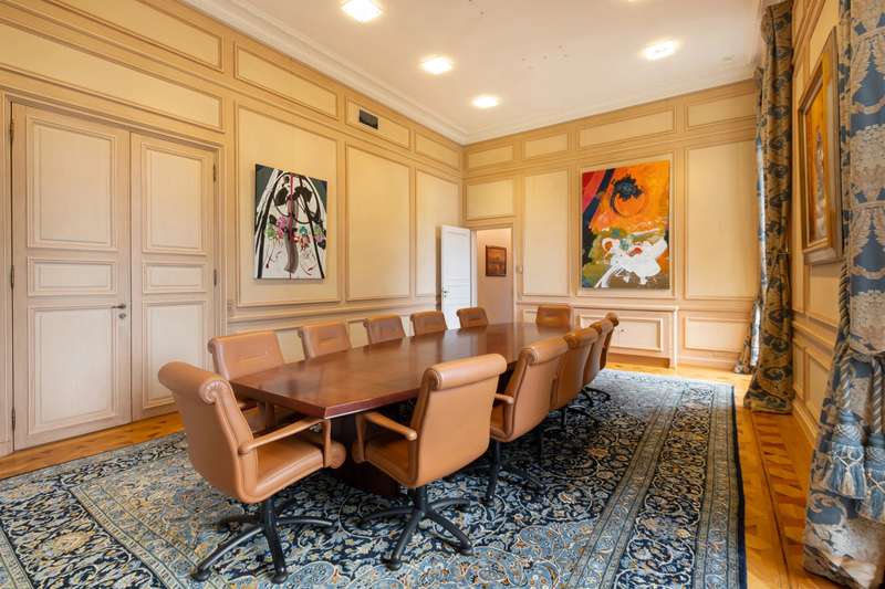 In the heart of a park of over 10,000 m², this splendid private mansion, surrounded by century-old trees, enjoys breathtaking views of Mont Blanc and Lake Geneva. Villa Fleur d’Eau holds historical significance, having hosted the 1985 Reagan–Gorbachev summit. This Second Empire property is currently used as office space by an international company, offering a living area of 993 m². It also includes an annex of approximately 370 m², garages, a pond, a greenhouse, and a gardener’s lodge. The courtyard can accommodate up to forty vehicles, while the monumental staircase lends the property its full grandeur.
