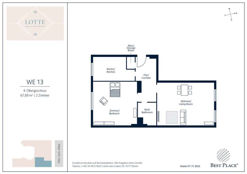 The offer includes a rented 2-room apartment in a beautiful Wilhelminian-style old building in Charlottenburg. Built in 1900, the classic Wilhelminian-style building opposite Charlottenburg Palace has 11 residential units and 4 commercial units. With a total of approx. 67.69 m², the space on offer here is very well frequented due to its top location.