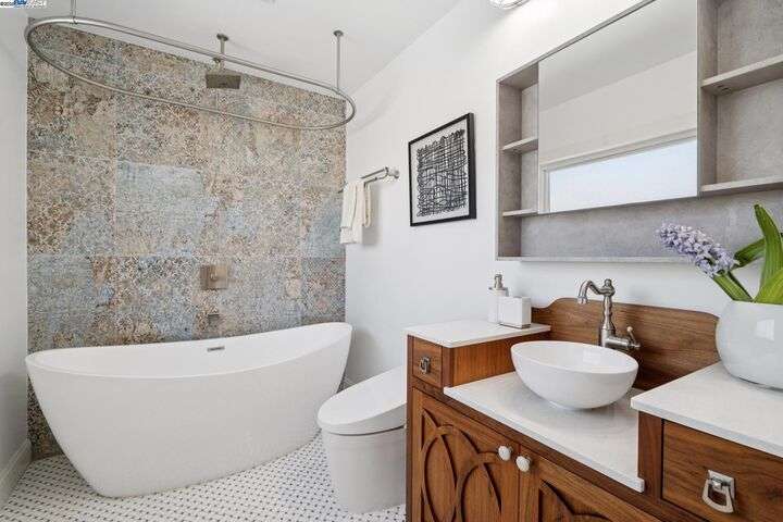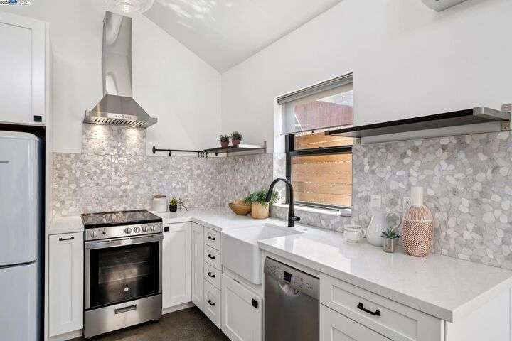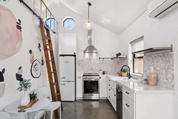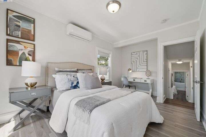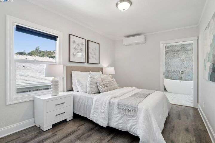 This stunning property in Toler Heights offers a unique living experience: a main 2BR/2BA home & a detached, permitted 1BR/1BA ADU w/a separate entrance. The main home, a thoughtfully upgraded retreat, features 2bed/2ba with an open floor plan. Beautiful kitchen w/a gas range & ample storage. The primary suite has been transformed into a spa-like escape, complete w/a large soaking tub & a TOTO bidet for true luxury experience. Step outside from the main home to a private deck, perfect for relaxing or entertaining. The ADU features a tall, airy ceiling with a loft, a full kitchen, a bedroom & a bathroom—providing a perfect space for guests, family, or potential rental income. The entire property is a private oasis. The beautiful courtyard patio, planter boxes & various fruit trees (Asian pear, apple, fig & passion fruits) w/hanging string lights create an inviting ambiance. 1-car garage w/driveway, laundry & additional storage in basement. Cool/Heat systems throughout for added comfort. Conveniently located near schools (Bishop O’Dowd HS & Barack Obama Academy), King Estate Park & Oakland Zoo. Enjoy easy access to the 580 freeway, BART, local groceries, downtown San Leandro, Lincoln Square Shopping Center & Montclair Village.