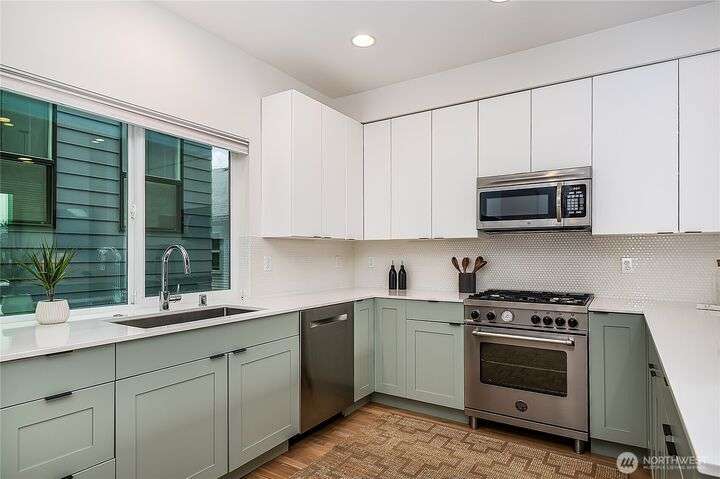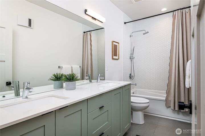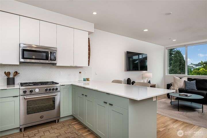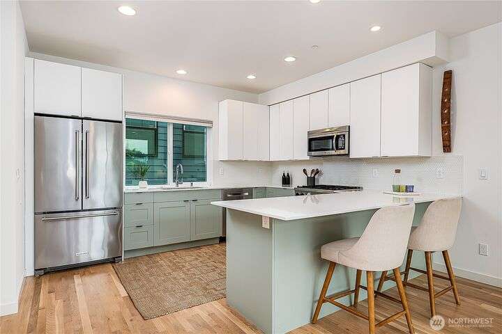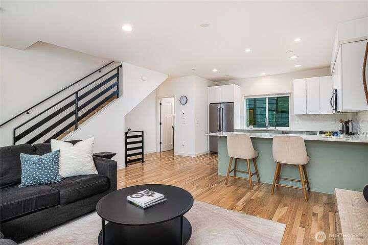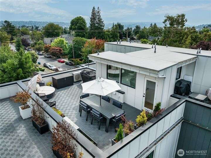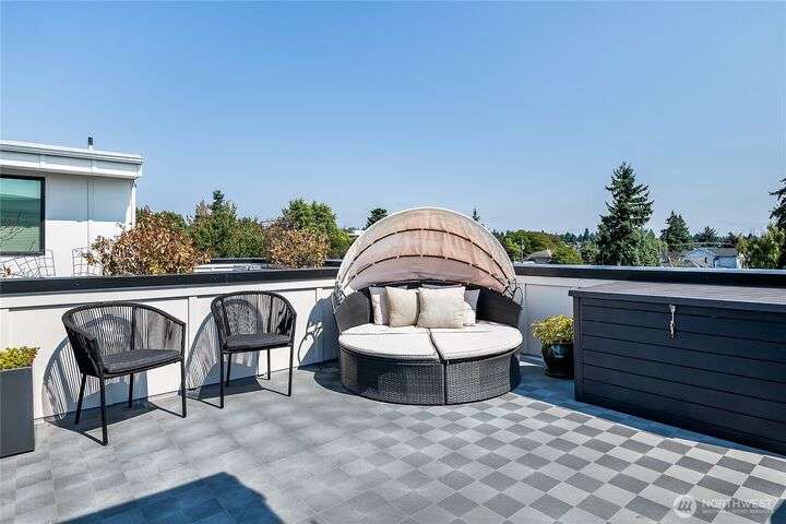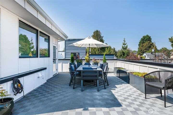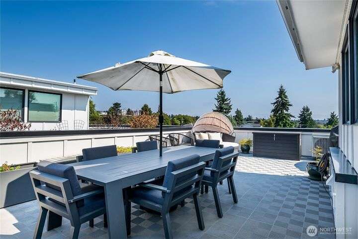 Sunset Hill, aptly named for it's western exposure highlighted by sunsets over the Puget Sound and Olympic Mtns. It's here folks go to escape busy Seattle streets, dine at famous hidden gem restaurants and enjoy life at a more relaxing pace. Positioned just above Shilshole Bay Marina this immaculate home provides a setting unlike the others! Soaring ceilings compliment a grand living room, party sized kitchen decorated with stainless appliances, light flooding windows and of course the expansive roof top deck equipped for entertaining, lounging, or both under cotton candy colored skies. Original hardwood flooring flows from top to bottom met by tiled bathrooms and cozy carpeted bedrooms which lay the ground work for a truly defined home.