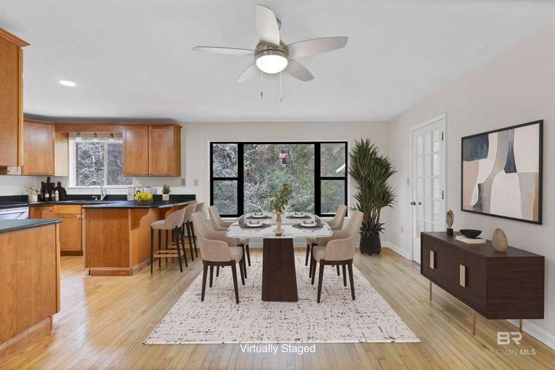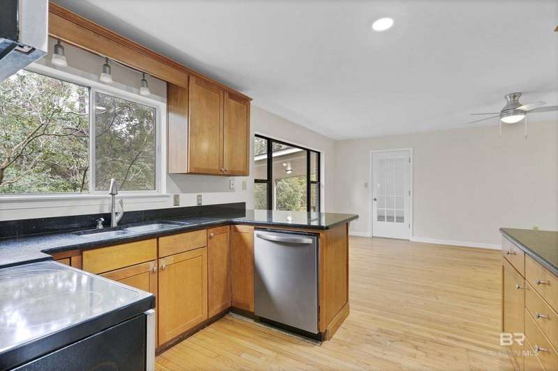 UNDER CONTRACT BUT BUYERS MUST SELL THEIR HOME! This great deal is still available for purchase giving current buyers 24 hour right of refusal! This Charming Home is just minutes from Downtown Fairhope. Nestled on a serene 1-acre lot on a quiet street that ends at Mobile Bay, this beautifully maintained home offers the perfect balance of privacy and convenience, located just 0.7 miles from all that Downtown Fairhope has to offer. Enjoy the peace and tranquility of nature with woods surrounding the property on two sides, while being only a short stroll away from deeded bay access.Boasting an abundance of natural light, the home features stunning hardwood floors throughout and an open, airy layout. The spacious living and dining area flows seamlessly into the newly renovated kitchen, complete with sleek black granite counters, stainless steel appliances, and custom cabinetry. The large den, with its expansive windows, brings the beauty of the surrounding forest inside and opens to a generous screened-in porch?perfect for indoor-outdoor living and entertaining.With three bedrooms, including a 20x21 master suite that can easily be transformed into a flex space to suit your needs, this home offers versatile living options. The thoughtfully renovated bathrooms, large carport, fenced backyard, and greenhouse complete this exceptional property with no HOA.This home is truly a hidden gem?schedule your private showing today! Buyer to verify all information during due diligence.
