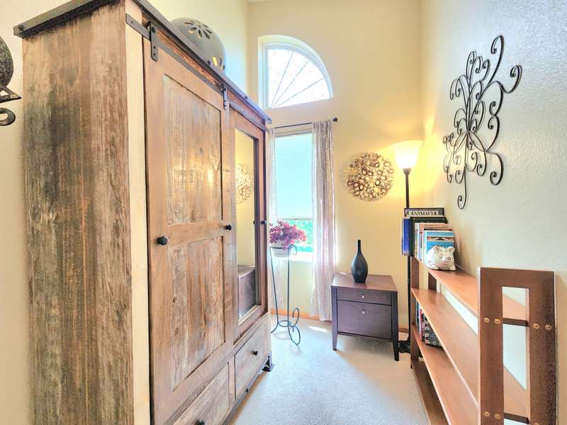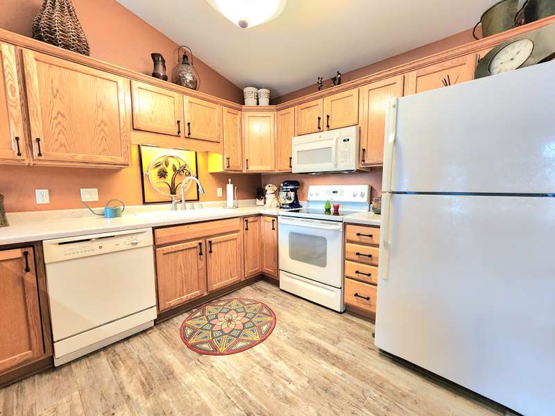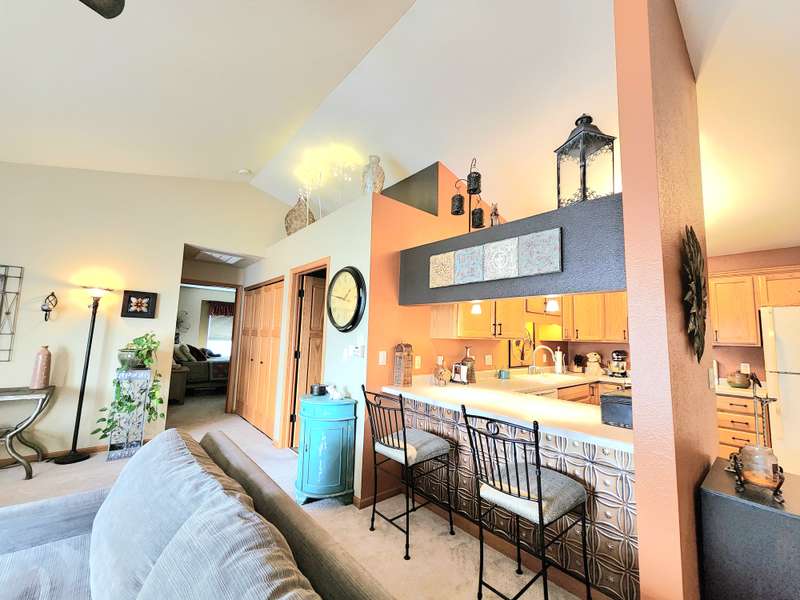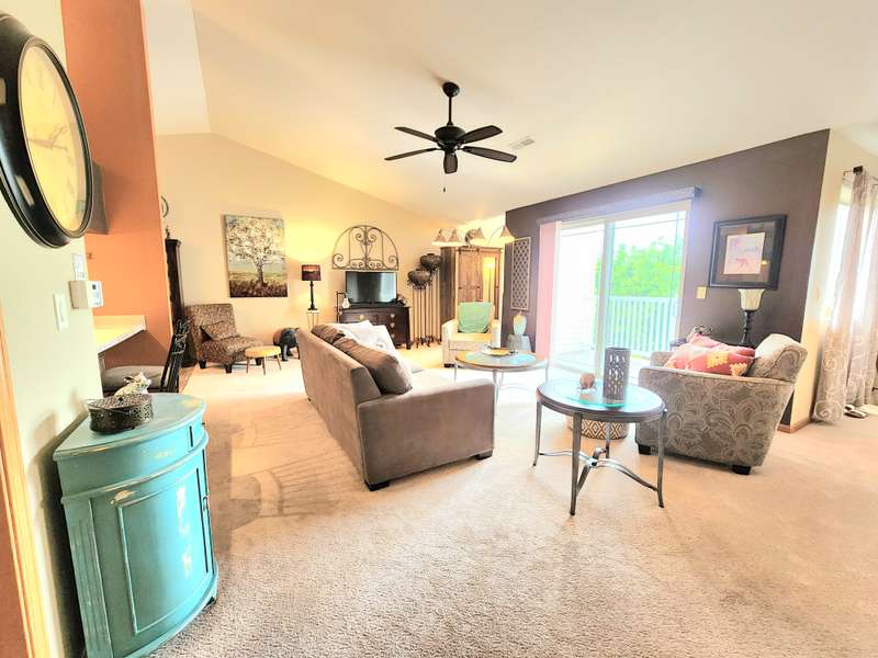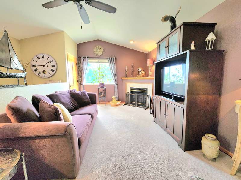 Discover this cheerful and welcoming upper-level condominium that combines comfort, privacy, and convenience. This well-laid-out unit boasts 2 sizable bedrooms and two full bathrooms. The open layout of the living and dining area is bathed in natural light, making it ideal for relaxation or entertaining guests. The kitchen features modern appliances, plenty of cabinetry, and a breakfast bar for casual meals. Step outside to your own private balcony, perfect for enjoying coffee in the morning or watching sunsets in the evening. A roomy family room with a gas fireplace creates a cozy atmosphere during colder nights. The main bedroom includes an ensuite bathroom and ample closet space. The second bedroom is conveniently located near the second bathroom, making it great for guests or a study area. Additional features include in-unit laundry with a full-sized washer and dryer, central heating and air conditioning, and an attached 2.5 car garage. Centrally positioned, this condo is close to shopping, dining, parks, and major highways, providing an exceptional mix of comfort and convenience.