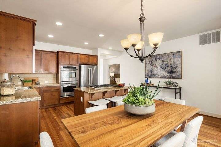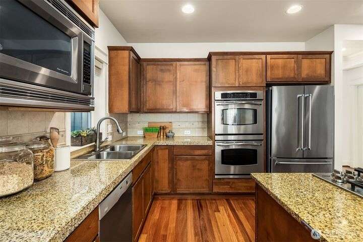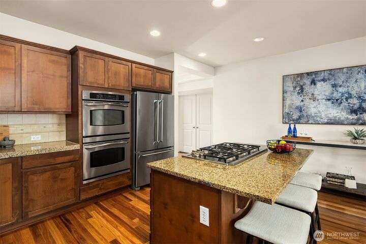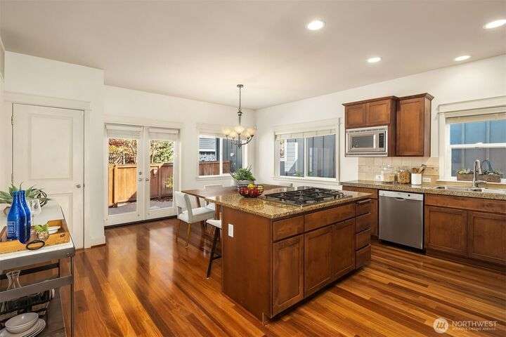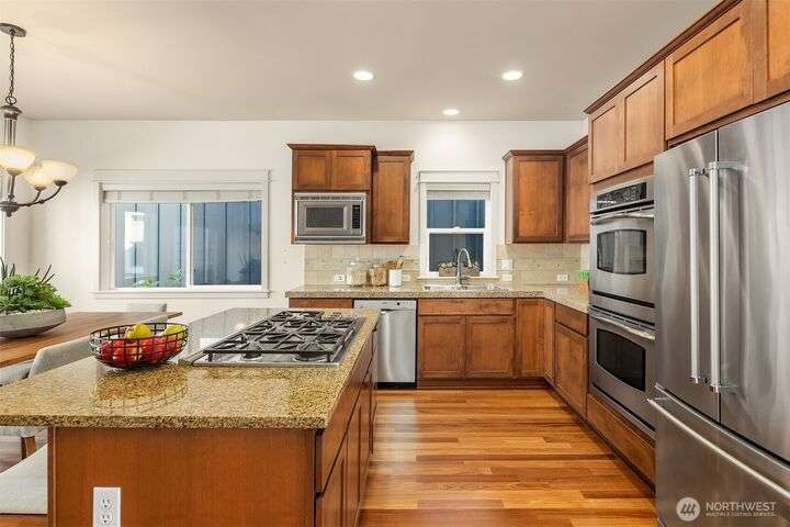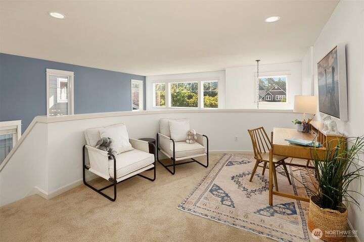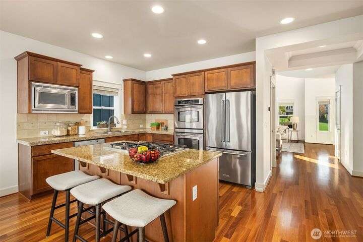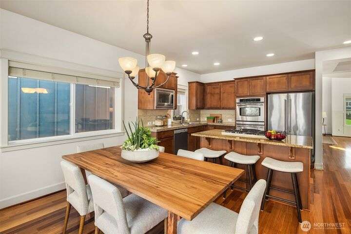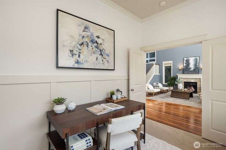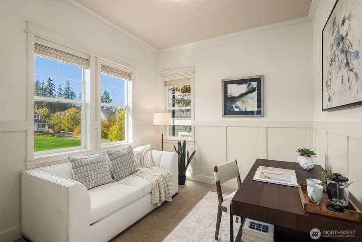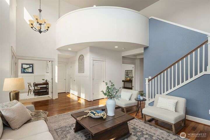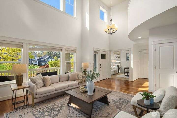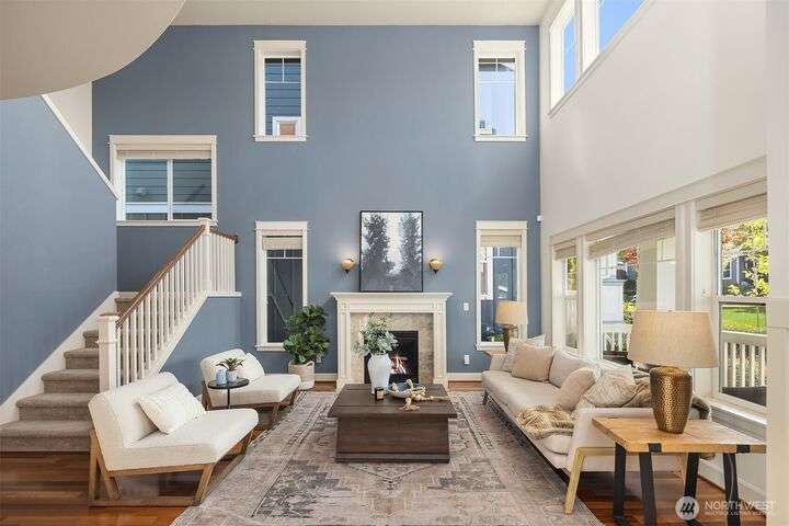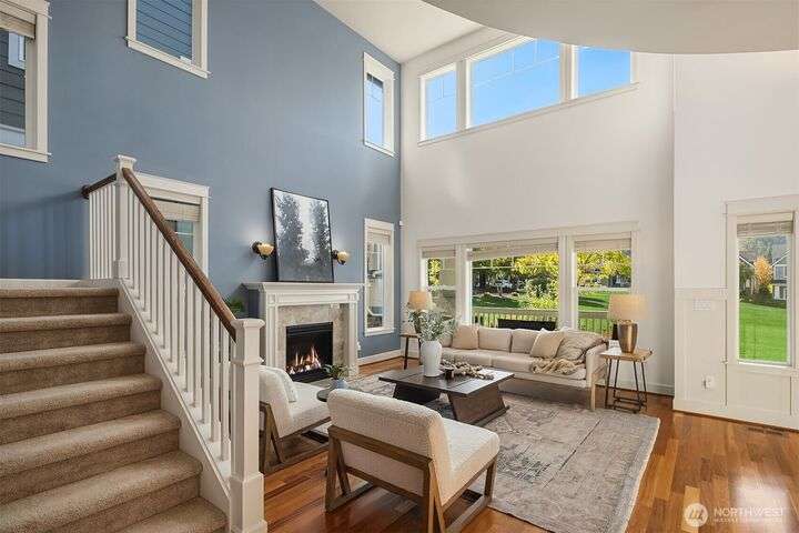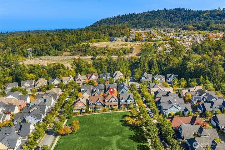 Welcome to this charming Issaquah Highlands home situated next to Dahlia Park. Step inside to soaring ceilings and expansive picture windows that fill the living room with natural light, along with a private home office ideal for work or study. The main floor features a spacious primary suite with an oversized bath and walk-in closet, an open kitchen with plenty of space for entertaining that flows to a fenced in patio. Upstairs you’ll find a cozy loft, two generous beds, and a versatile finished room that can be used for storage, hobbies, or a game room. A storybook-style covered front porch overlooking Dahlia Park completes this wonderful home, blending comfort, charm, and convenience in one of Issaquah’s most desirable neighborhoods.
