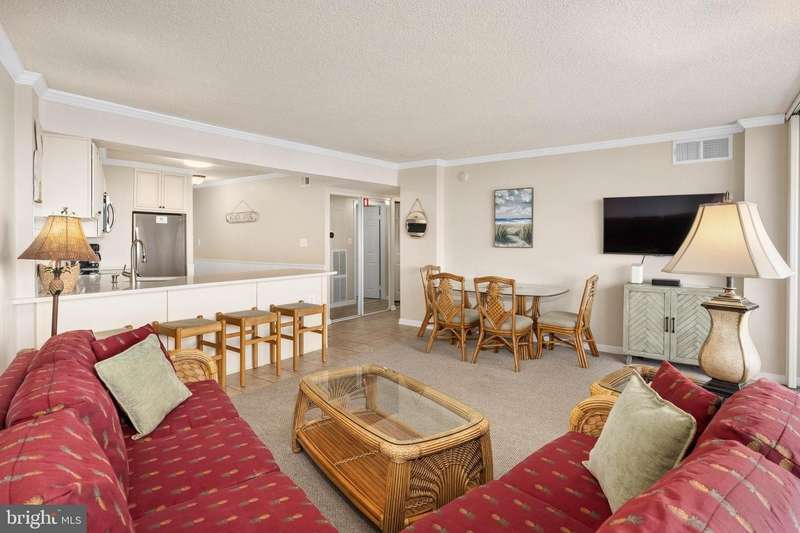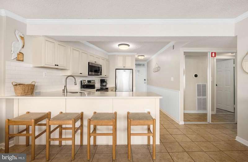 Welcome to 8500 Coastal Highway Unit 308, a charming 2 bedroom, 2 bathroom condo in the heart of Ocean City. Updated kitchen with subway tile backsplash, breakfast bar, stainless appliances, quartz countertops and ample cabinet space. Off the kitchen is a spacious living room - dining room combo that provides a nice place to gather and opens up to the large balcony. The master bedroom is spacious, has a view of the bay, features a master bath and direct access to the balcony. The second bedroom is a versatile space accommodates guests with a twin over twin bunk and a full/queen bed. The hall bath is updated, bright, charming and features a shiplap wall. Step outside onto the large covered balcony, where you'll be greeted by a view of the bay and a delightful peek of the ocean. This outdoor oasis serves as an extension of your living space, perfect for enjoying morning coffee or watching the sunset over the bay. Enjoy cost saving heating and air conditioning... the building is equipped with geothermal heating and cooling making it eco-friendly and efficient. The geothermal system is owned and maintained by the Antigua building & specific vendor. Unit conveys furnished, with the exception of the large beanbag chair and sellers personal decor & items. This property is not affected by the new rental laws.