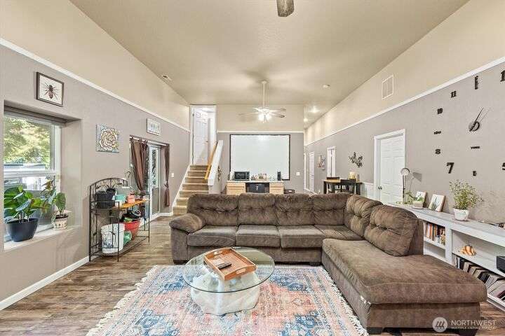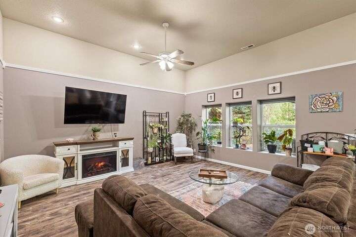 Welcome to this spacious 4-bedroom, 3-bath, 3,108 sq. ft. home in the highly sought-after Kelso Hills neighborhood. The main floor features a large kitchen with island and eating bar, opening to a cozy living room with wood stove-perfect for winter nights. The main also includes the primary suite with walk-in closet and private ¾ bath, a second bedroom, full bath, and laundry room. Enjoy peaceful outdoor living on the covered back deck—ideal for relaxing or entertaining. The nearly 1,500 sq. ft. finished basement offers two large bedrooms, a ¾ bath, spacious great room, and bonus rooms perfect for a home office, gym, or media space. The fenced backyard which is backed up by greenspace has chicken coop, and storage shed. This is a must see!