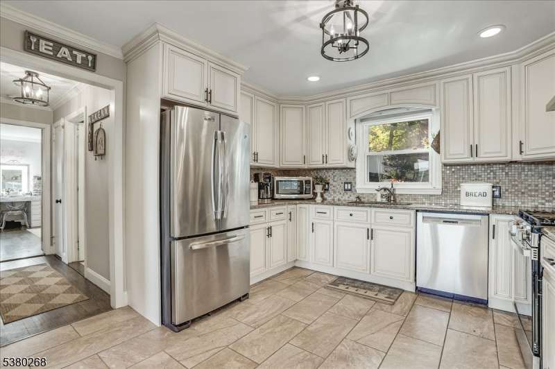 This lovely 3-bedroom, 2-bath Cape in Lake Mohawk with scenic lake views including dramatic sunsets is ready for you to move in and enjoy! Perfectly located within walking distance to LMCC, the Boardwalk, Lake Mohawk Tennis Club, beaches, playgrounds, shops and restaurants. The home has been thoughtfully updated with fresh paint, extensive molding including wainscoting and shiplap accents. There is an updated kitchen featuring beautiful cabinetry, granite countertops and stainless steel appliances. The living room is enhanced with built-ins flanking the wood-burning fireplace. Hardwood flooring found throughout the home was refinished in 2021. The home features a first-floor primary bedroom with an updated hall bath including radiant heat and linen storage. Upstairs, two spacious bedrooms offer plenty of storage, a full bath, and gorgeous lake views. The partially finished basement (2024) includes a recreation space, utility room, laundry, storage and oversized garage. The home is wired for a generator. Outdoors, enjoy lake views from the flat, nicely landscaped property with a shed and fenced backyard (2023). Updates include the roof (2022), siding and windows installed by a previous owner, a water heater and softener (2022). A new septic absorption system is being installed. Experience the Lake Mohawk lifestyle where you feel like you are on vacation year round.